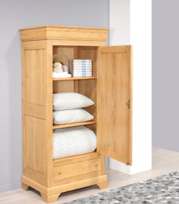 Notre armoire est 100% massive, les fonds et les étagères sont en frêne, châtaignier, hêtre…