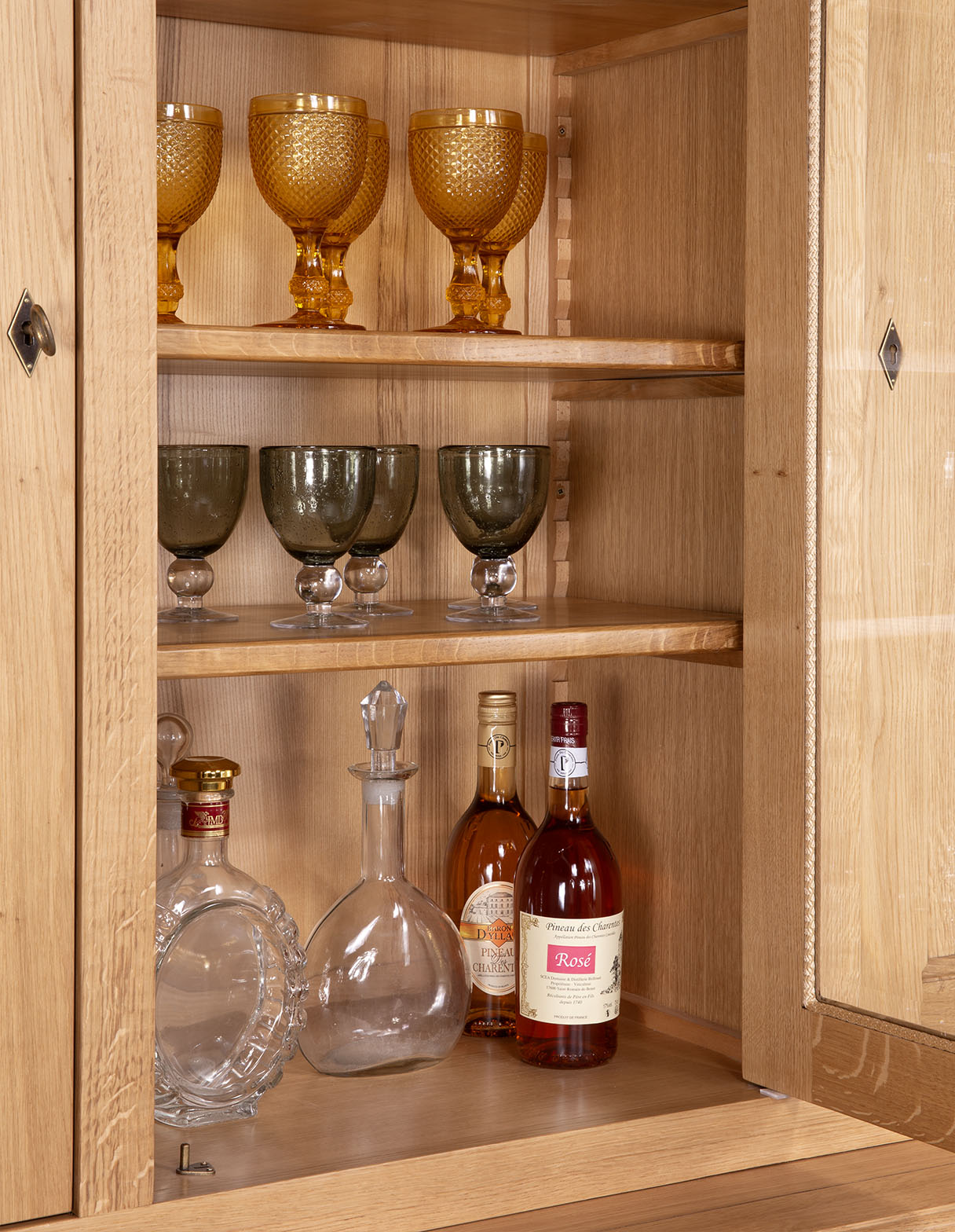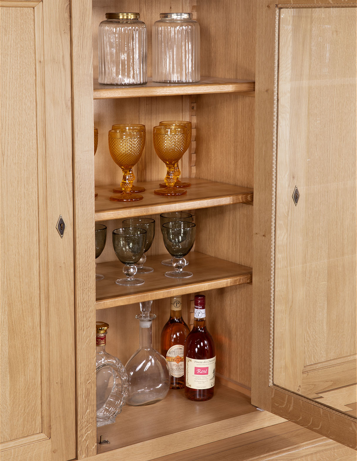 Les fonds et les étagères sont en bois de pays massifs (hêtre, frêne…)