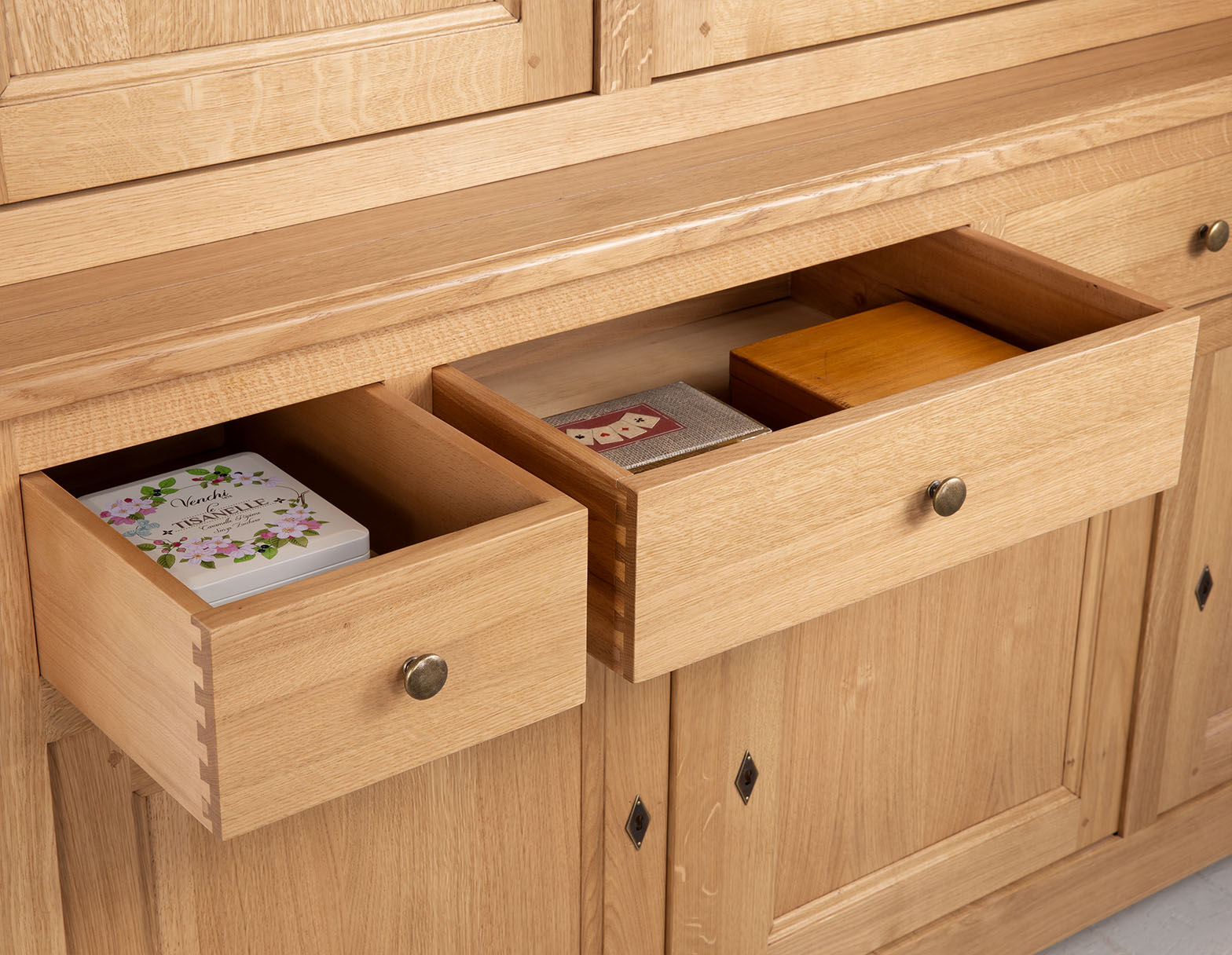 Bahut 2 corps Emmanuel 6 portes 4 tiroirs en Chêne Massif de style Campagne