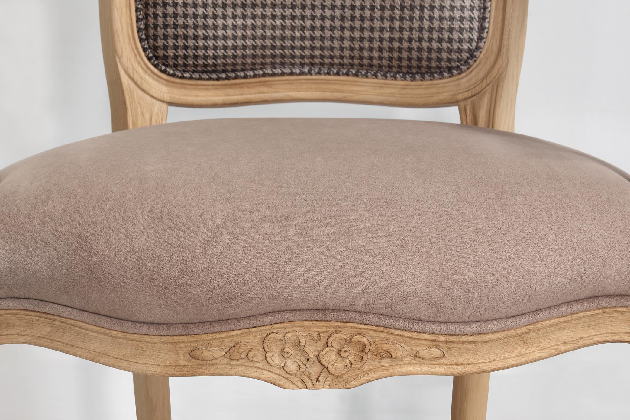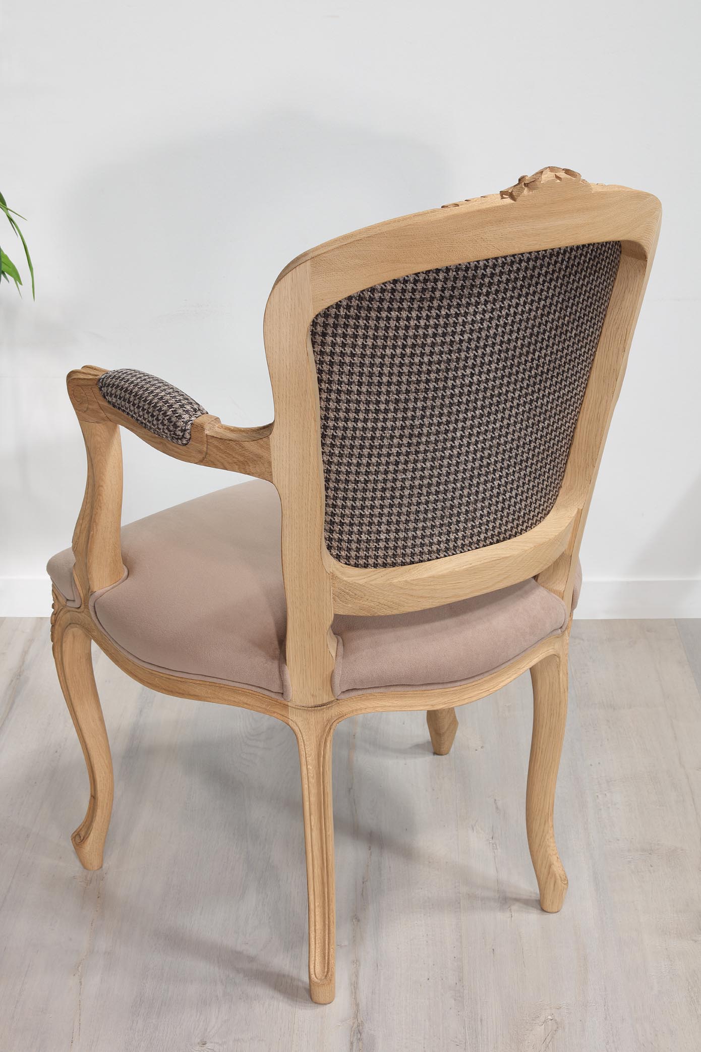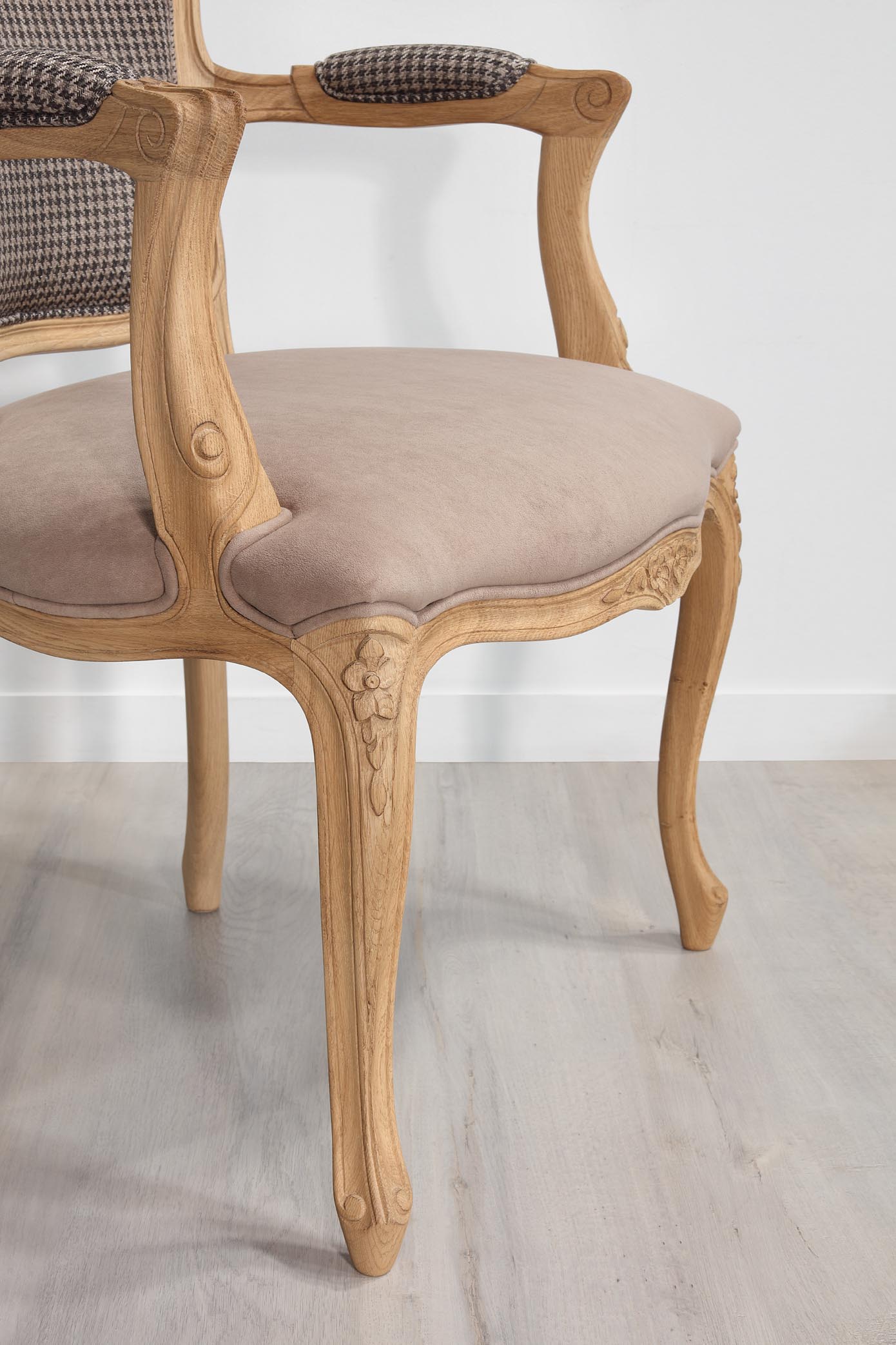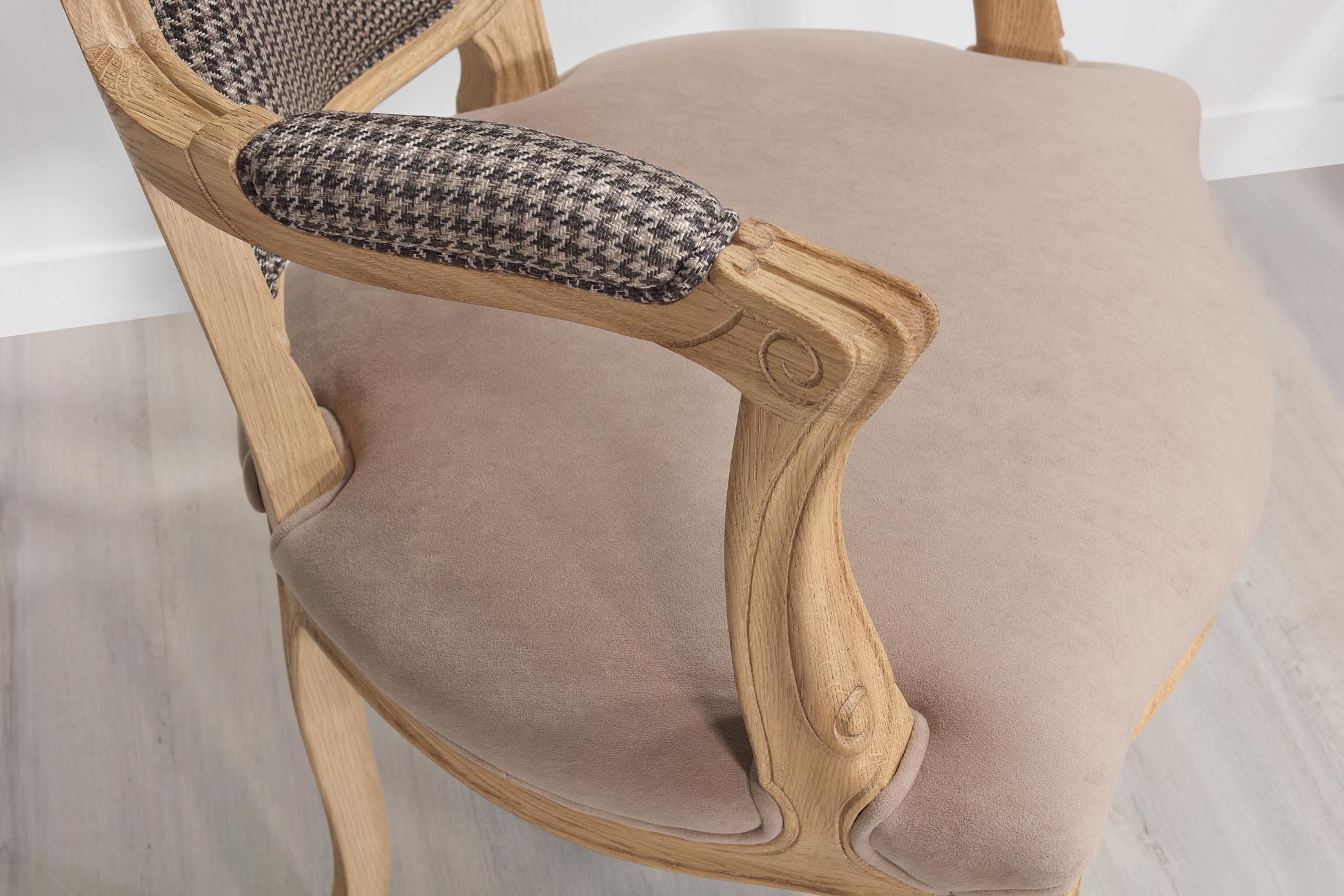 Bergère de style Louis XV Alexia réalisée en Chêne massif Tissu VALDOURO Taupe