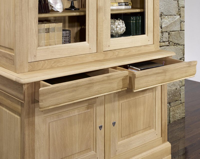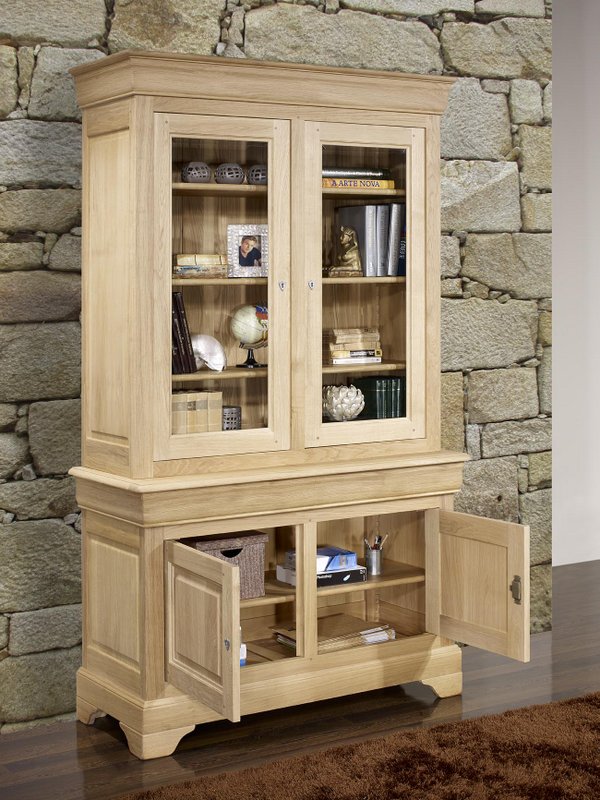Bibliothèque 2 corps 2 portes réalisée en Chêne Massif de style Louis Philippe