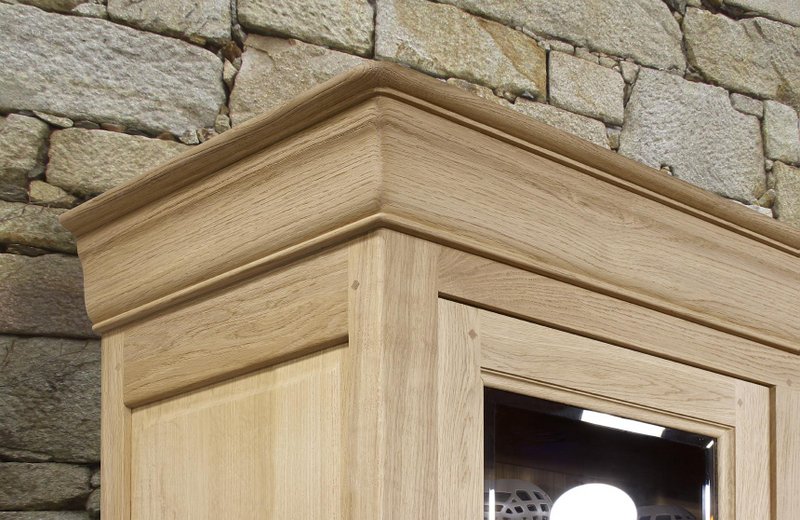 Le chêne est brossé délicatement dans le sens des veines du bois, il est ensuite appliqué un vernis acrylique afin de conserver l’aspect naturel du chêne.