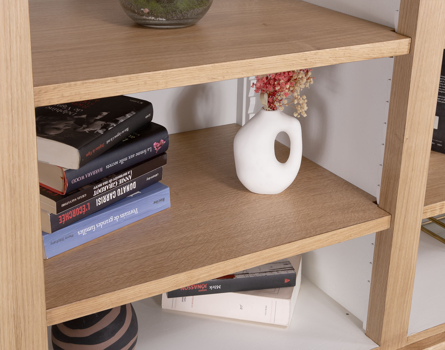 Bibliothèque 2 corps en chêne de ligne contemporaine,