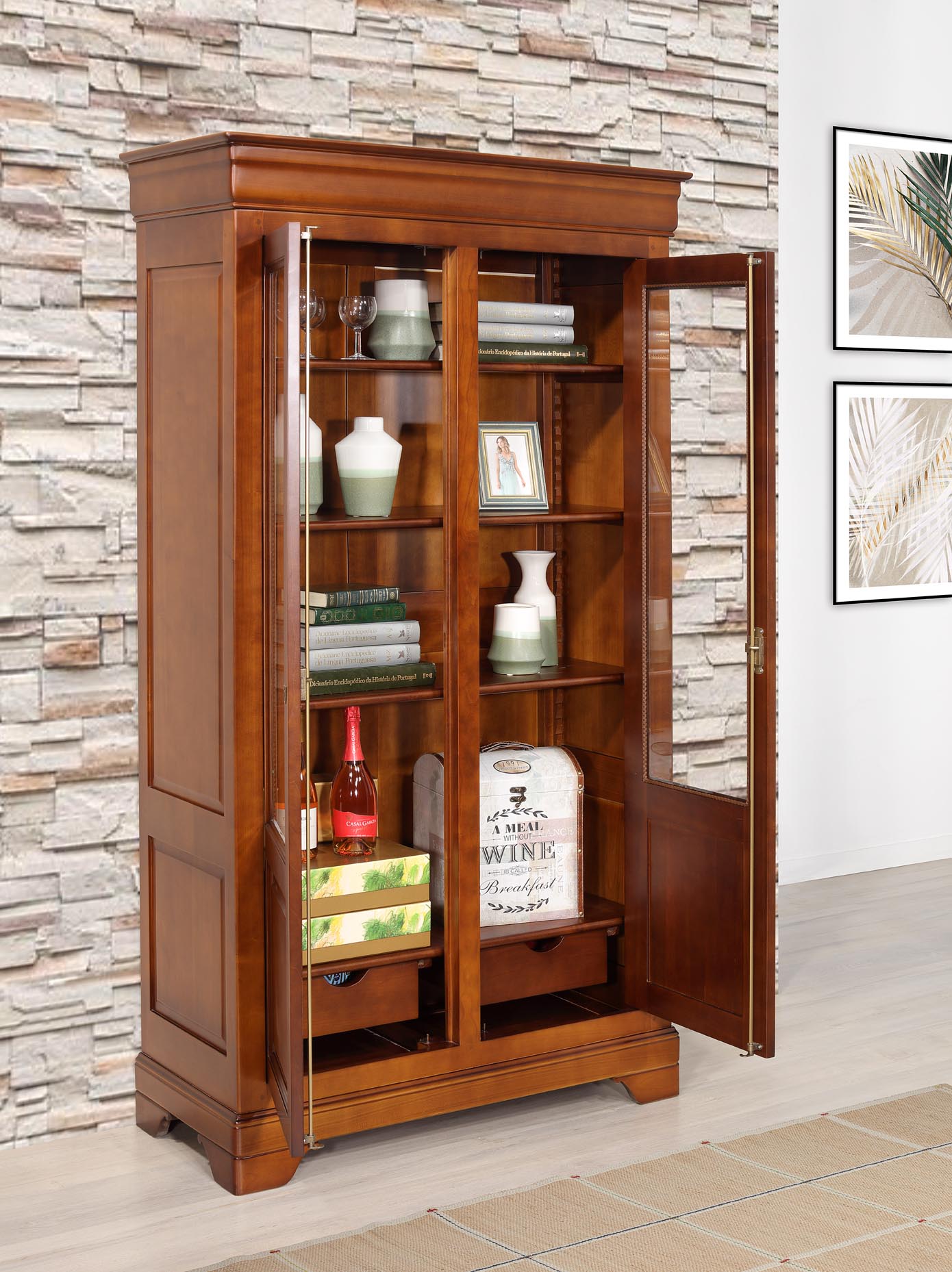 Bibliothèque 2 portes réalisée en Merisier Massif de style Louis Philippe