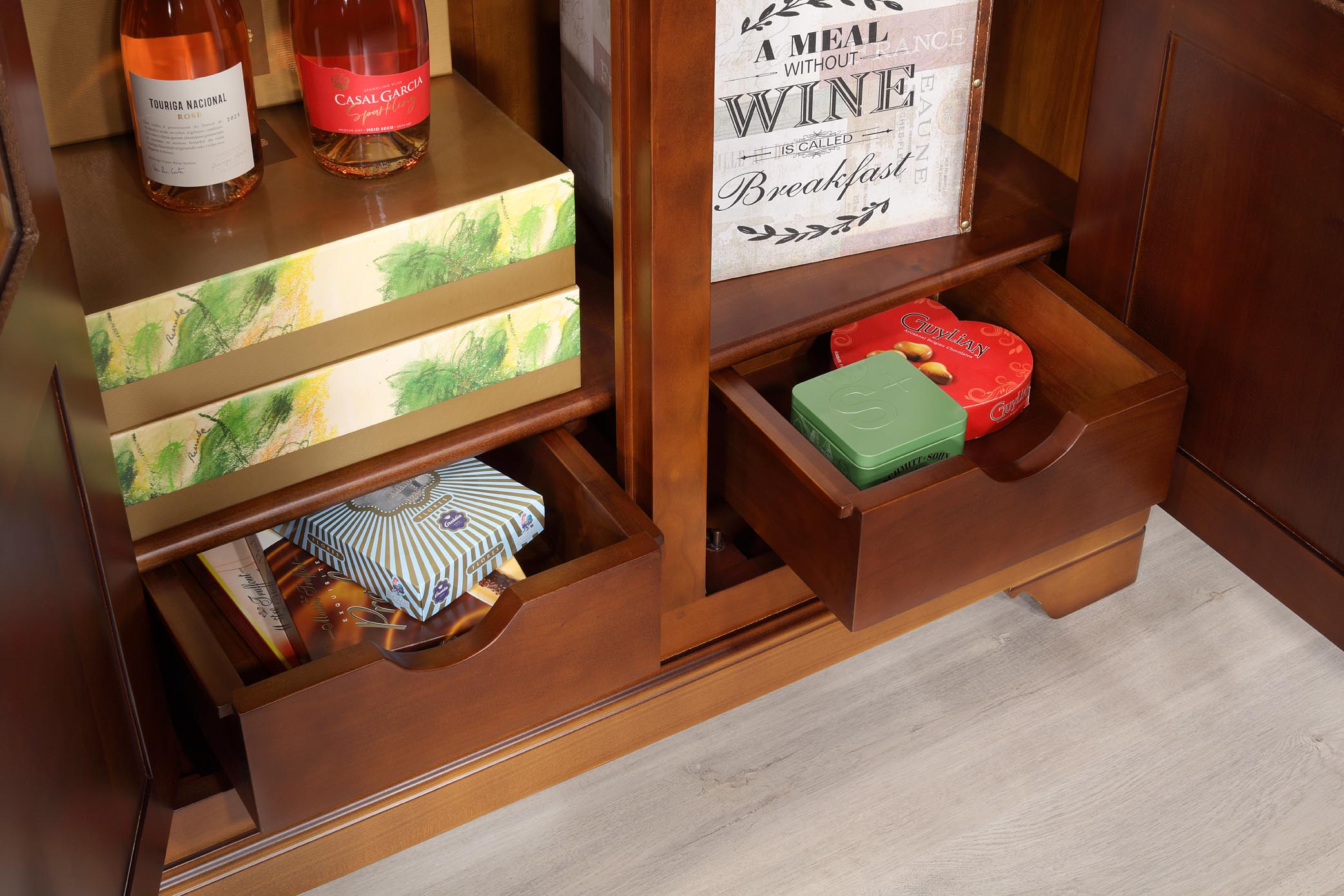 Les fonds et les étagères sont en hêtre, frêne, châtaignier…