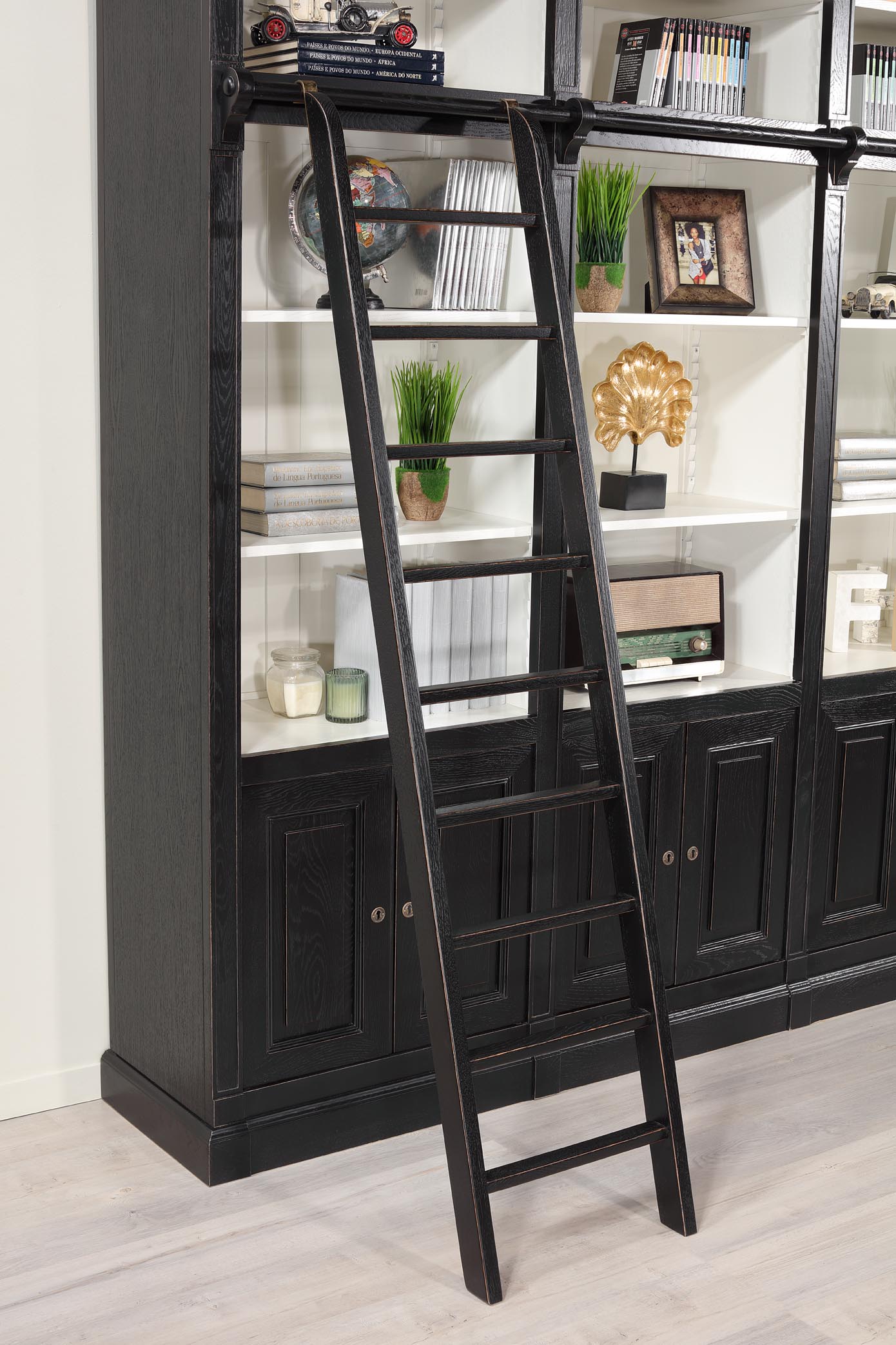 Echelle en chêne massif, fixée avec des crochets (en fer) sur supports chêne massif. Les fonds et les étagères sont en Frêne Massif.