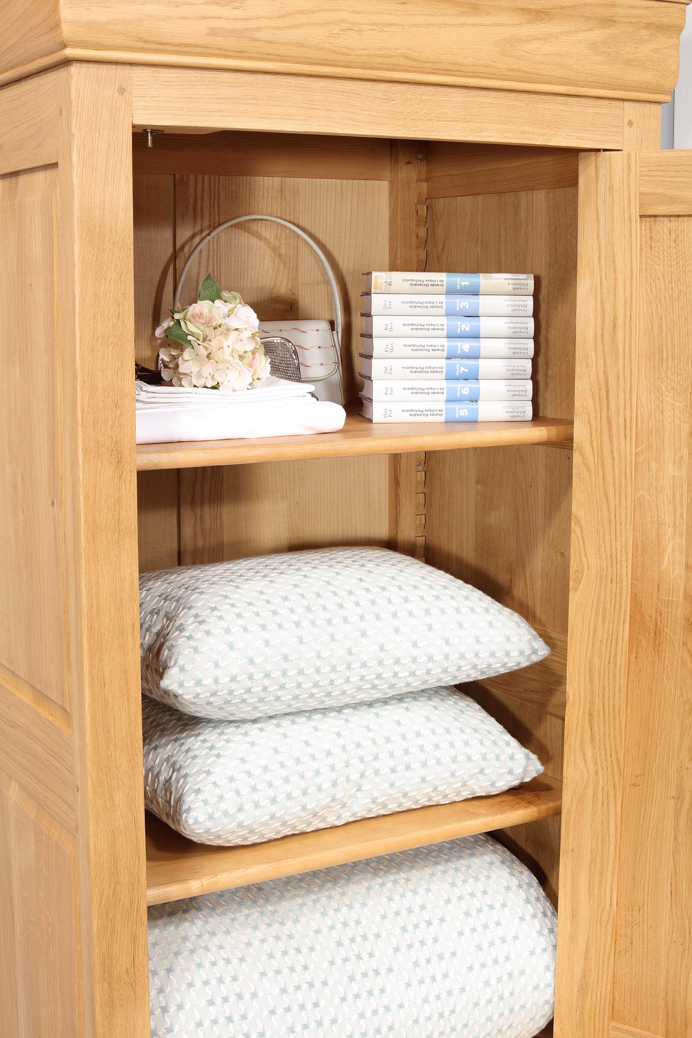 A l’intérieur se trouvent 3 étagères montées sur crémaillères. Possibilité de Penderie (nous le préciser lors de la commande)