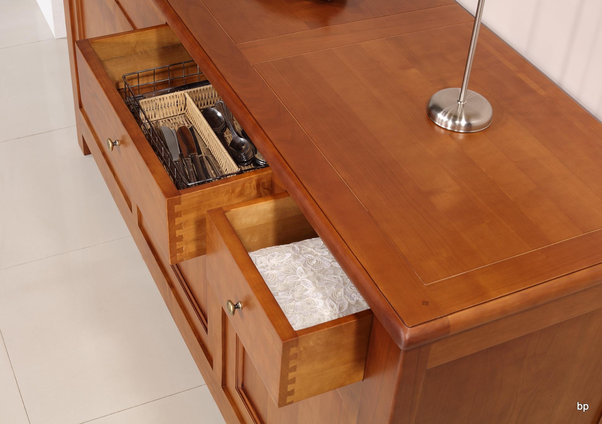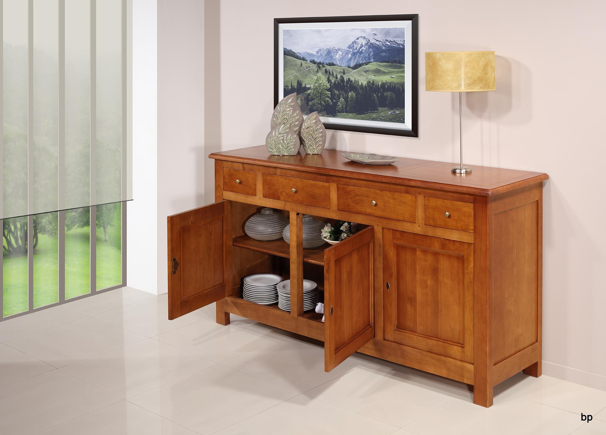Buffet 3 portes 4 tiroirs réalisé en MERISIER Massif de style Campagne