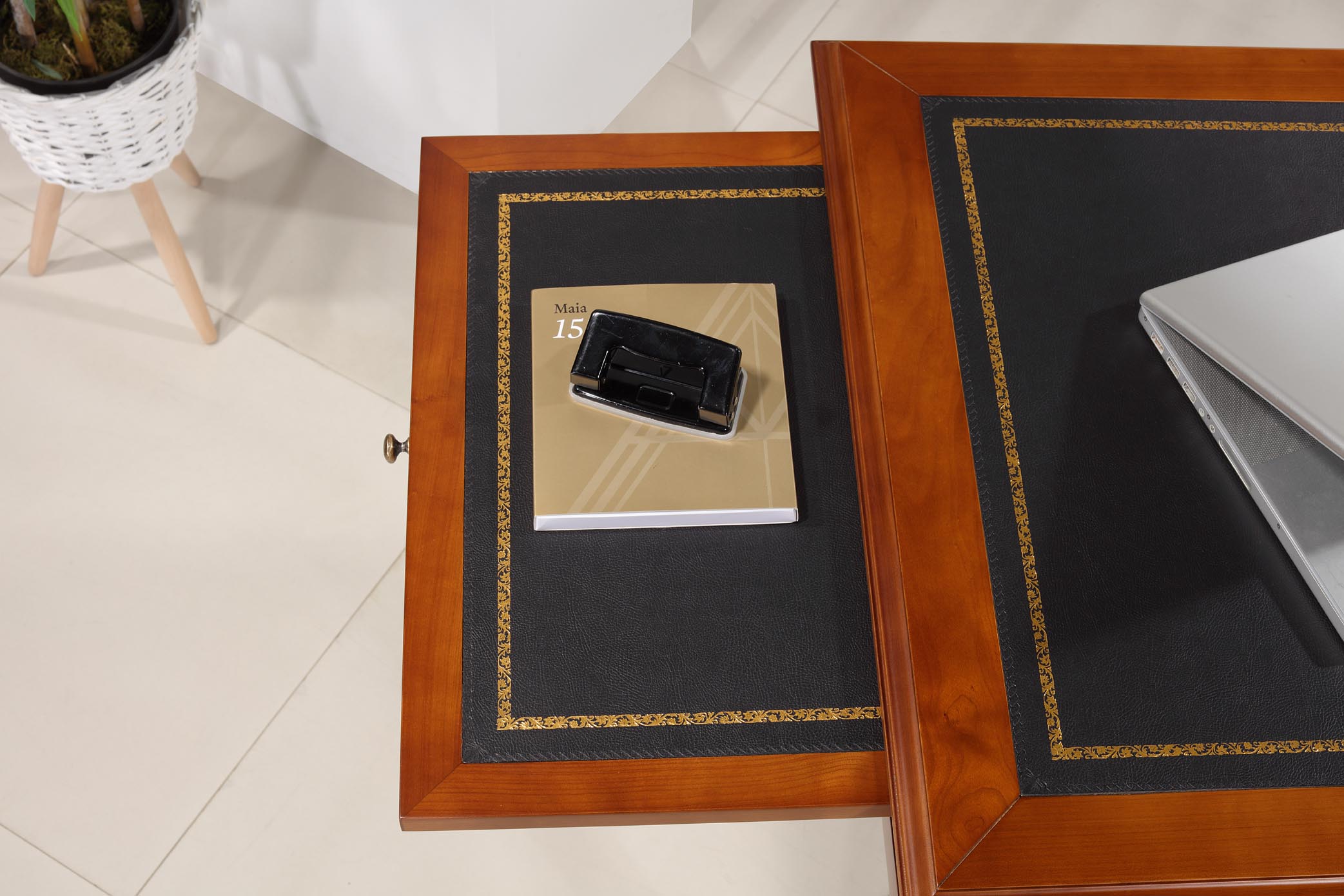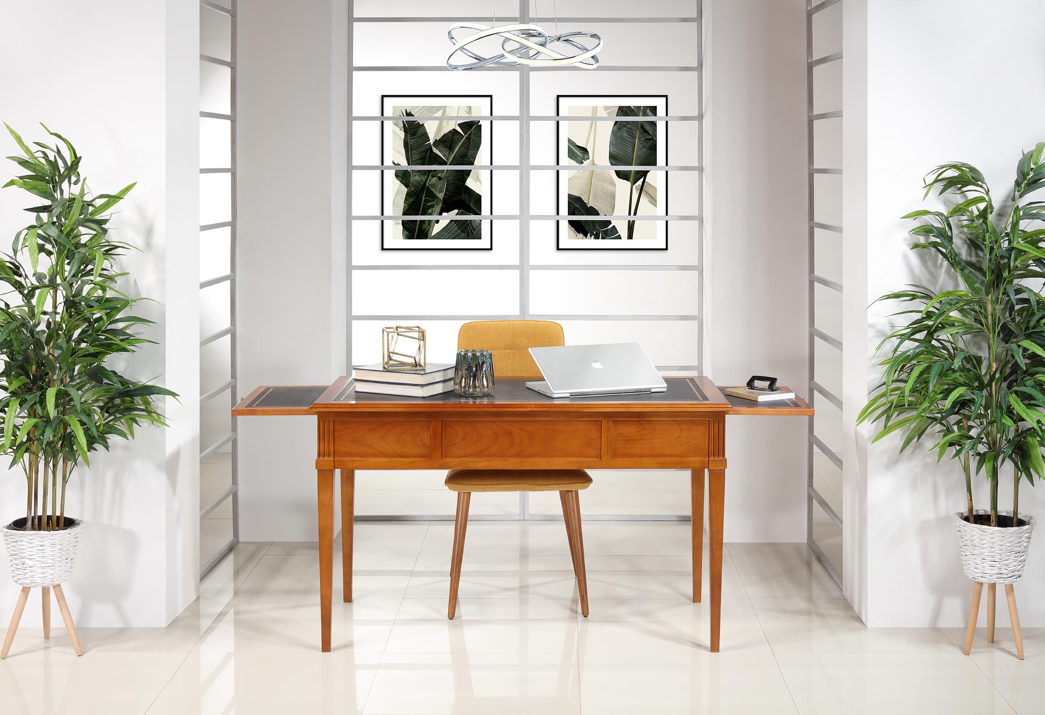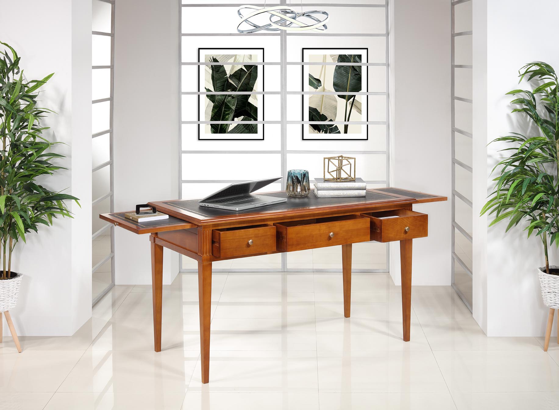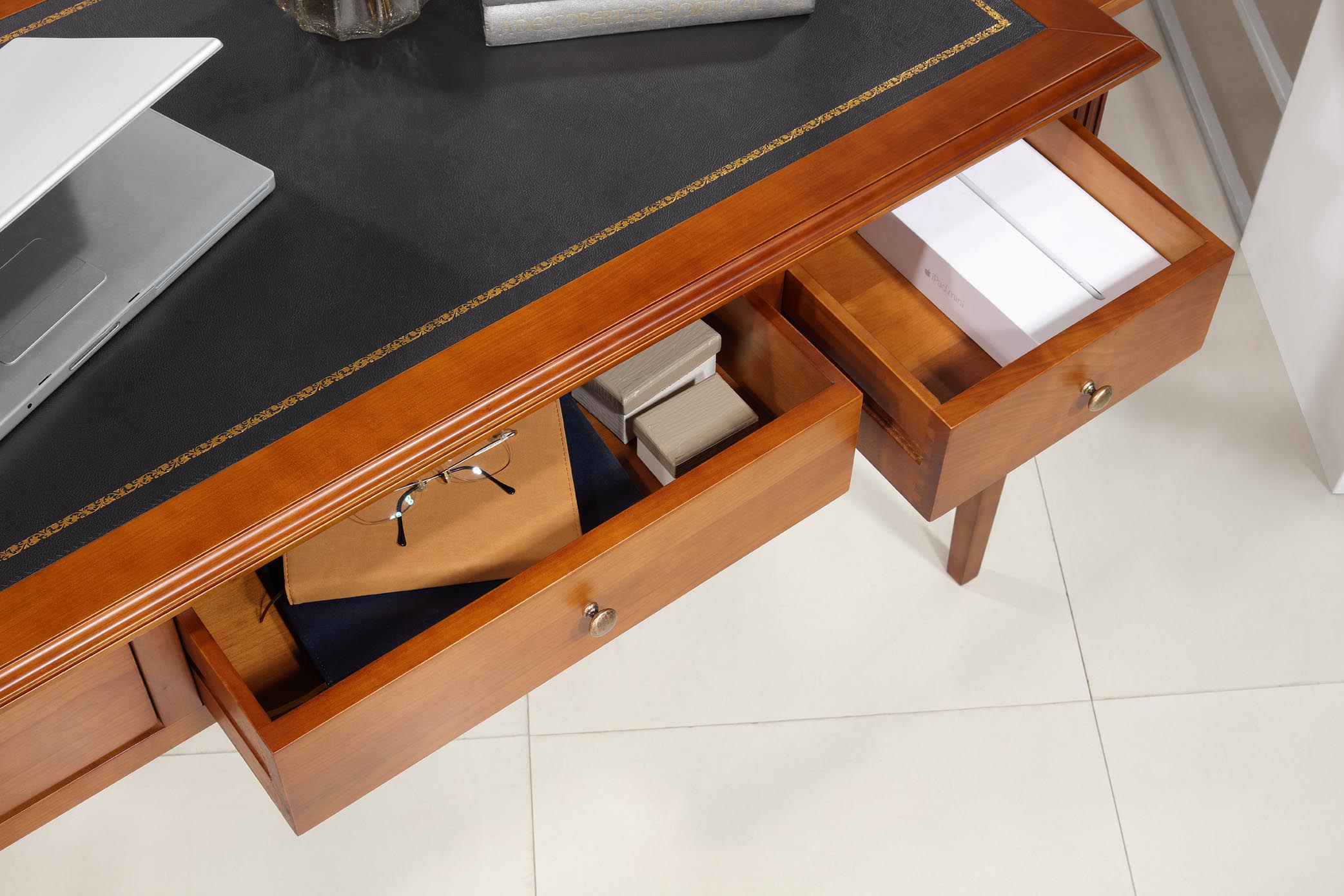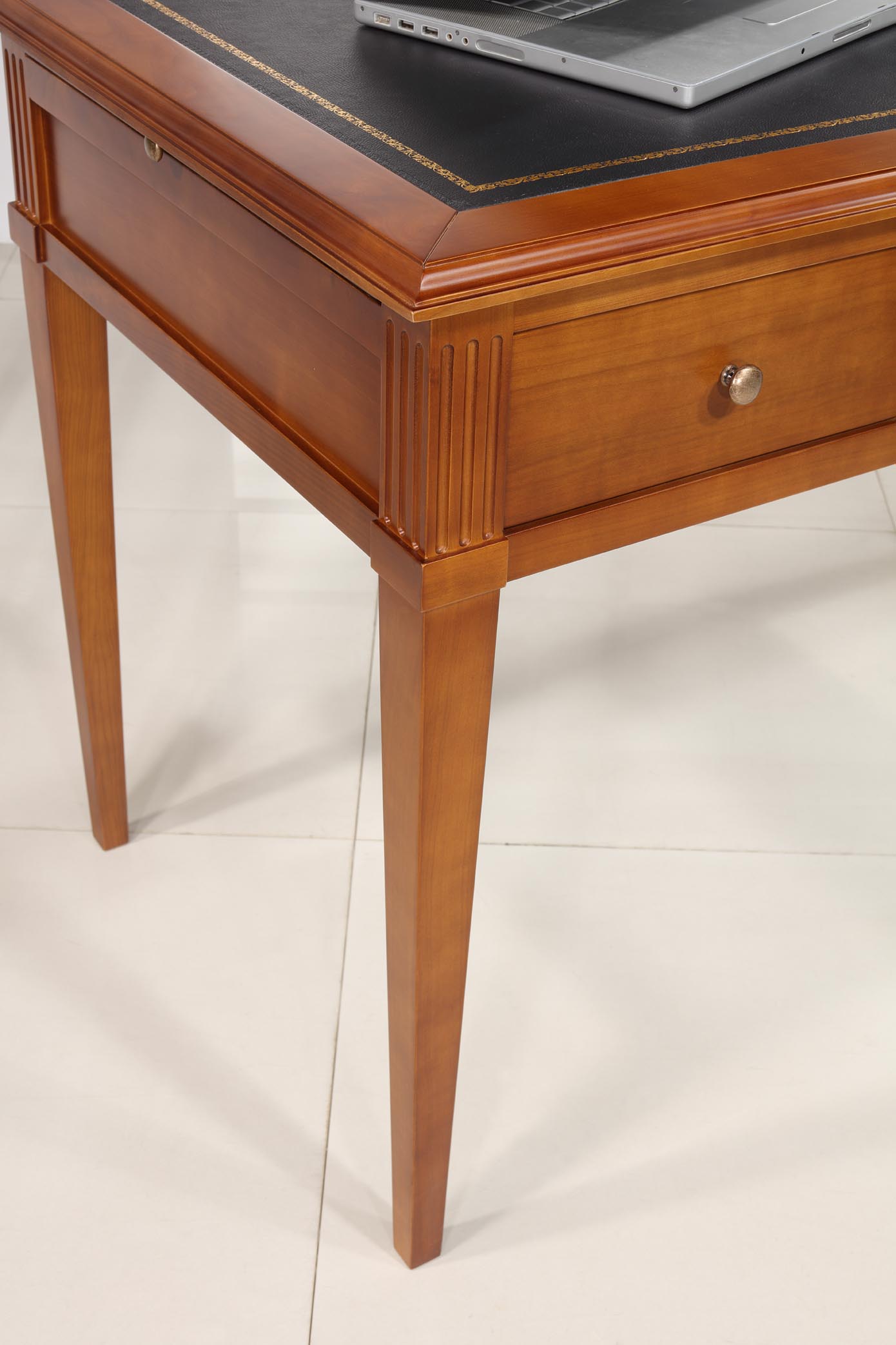 Bureau 3 tiroirs Agathe réalisé en Merisier de style Directoire Surface d’écriture recouverte d’une moleskine noir