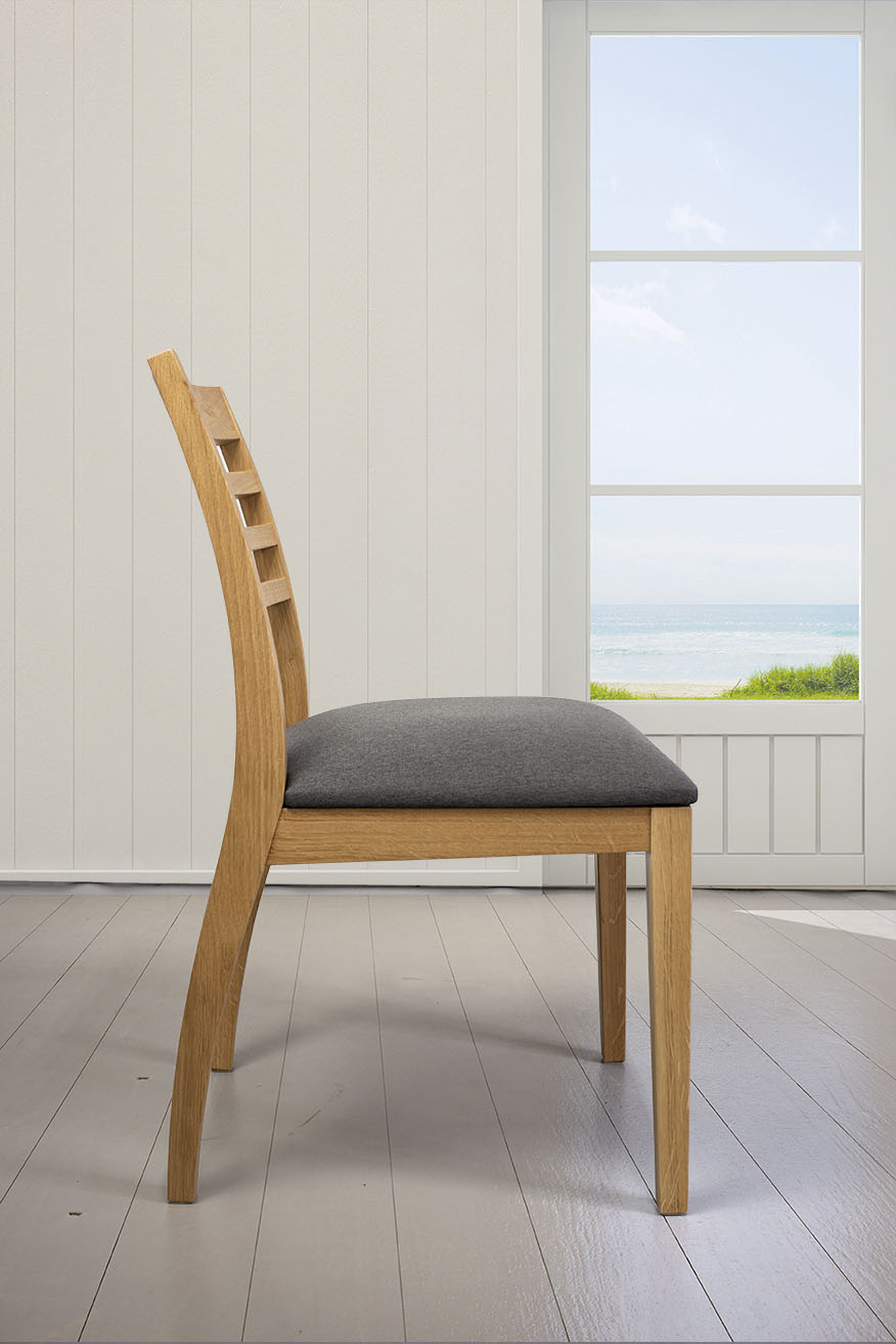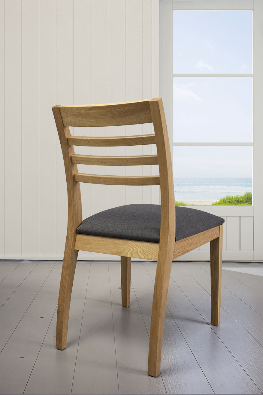 Chaise Florian réalisée en chêne massif Ligne contemporaine Assise Tissu BRONX JEANS