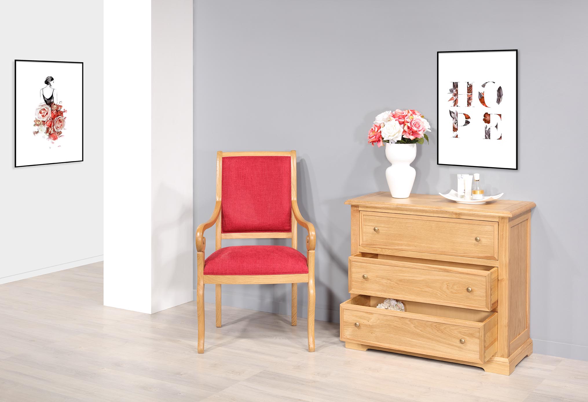 Commode 3 tiroirs Adam, réalisée en Chêne Massif de style Campagne
