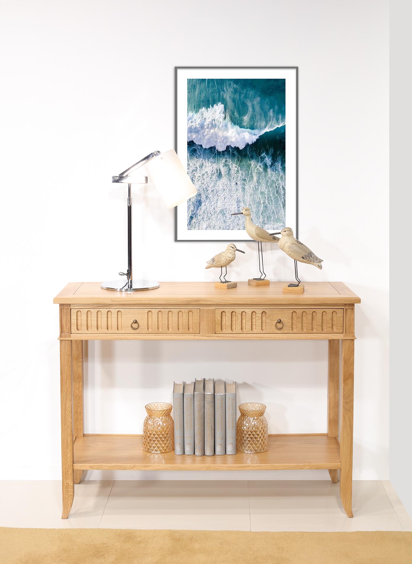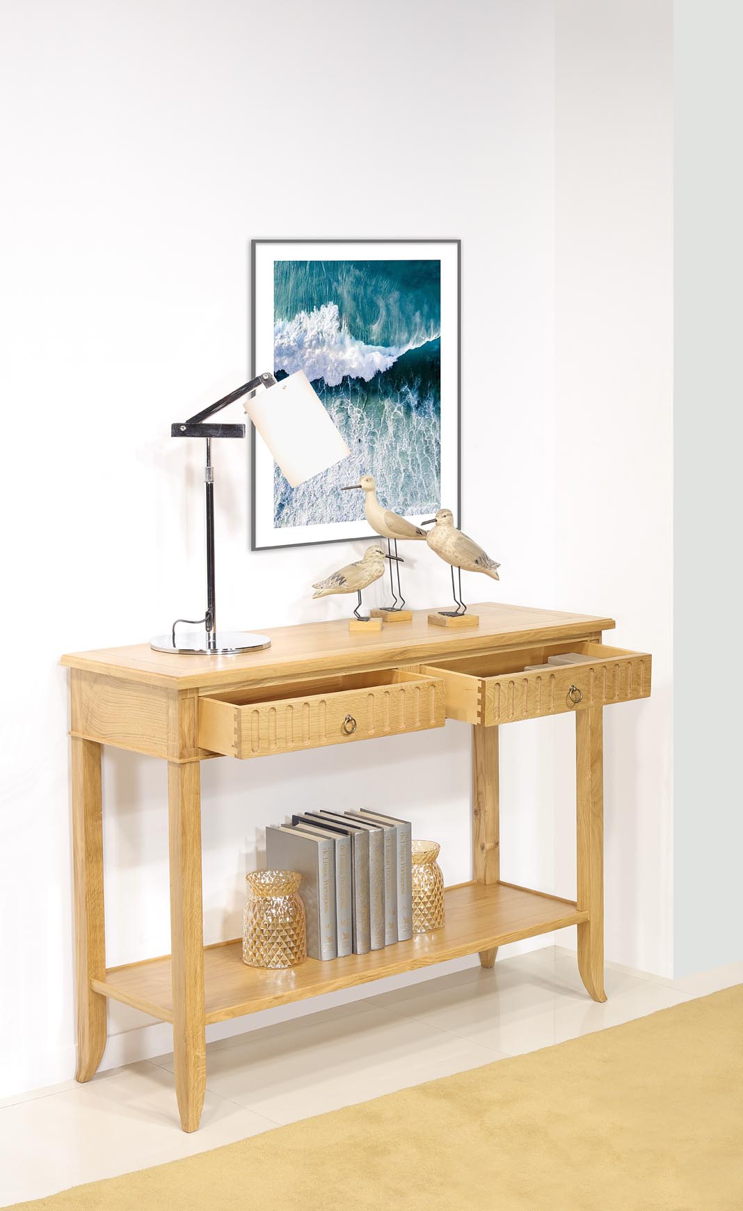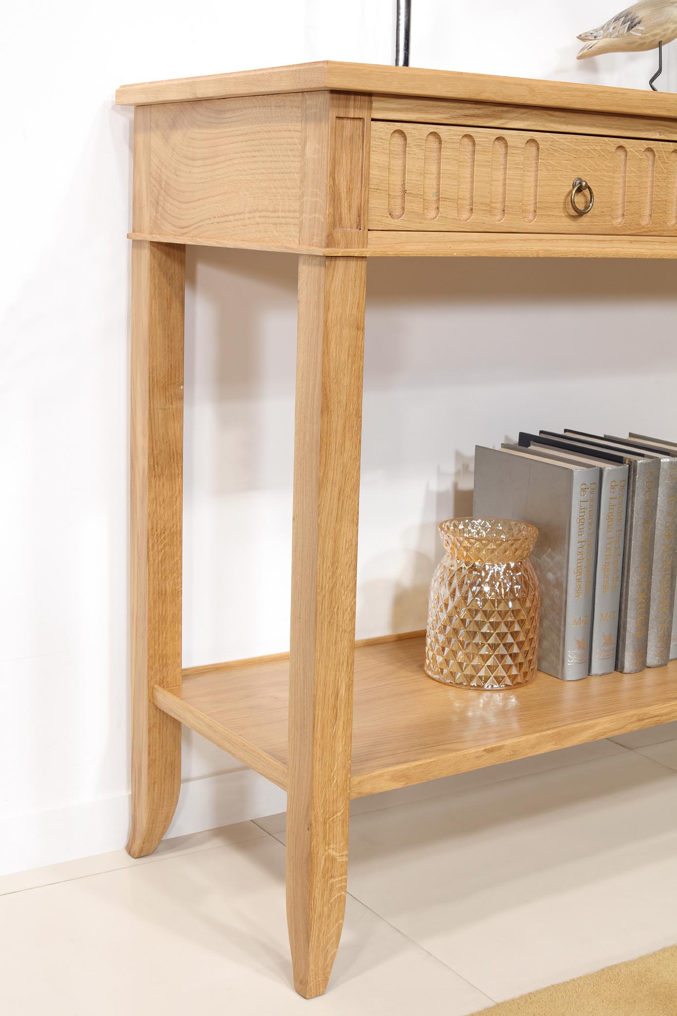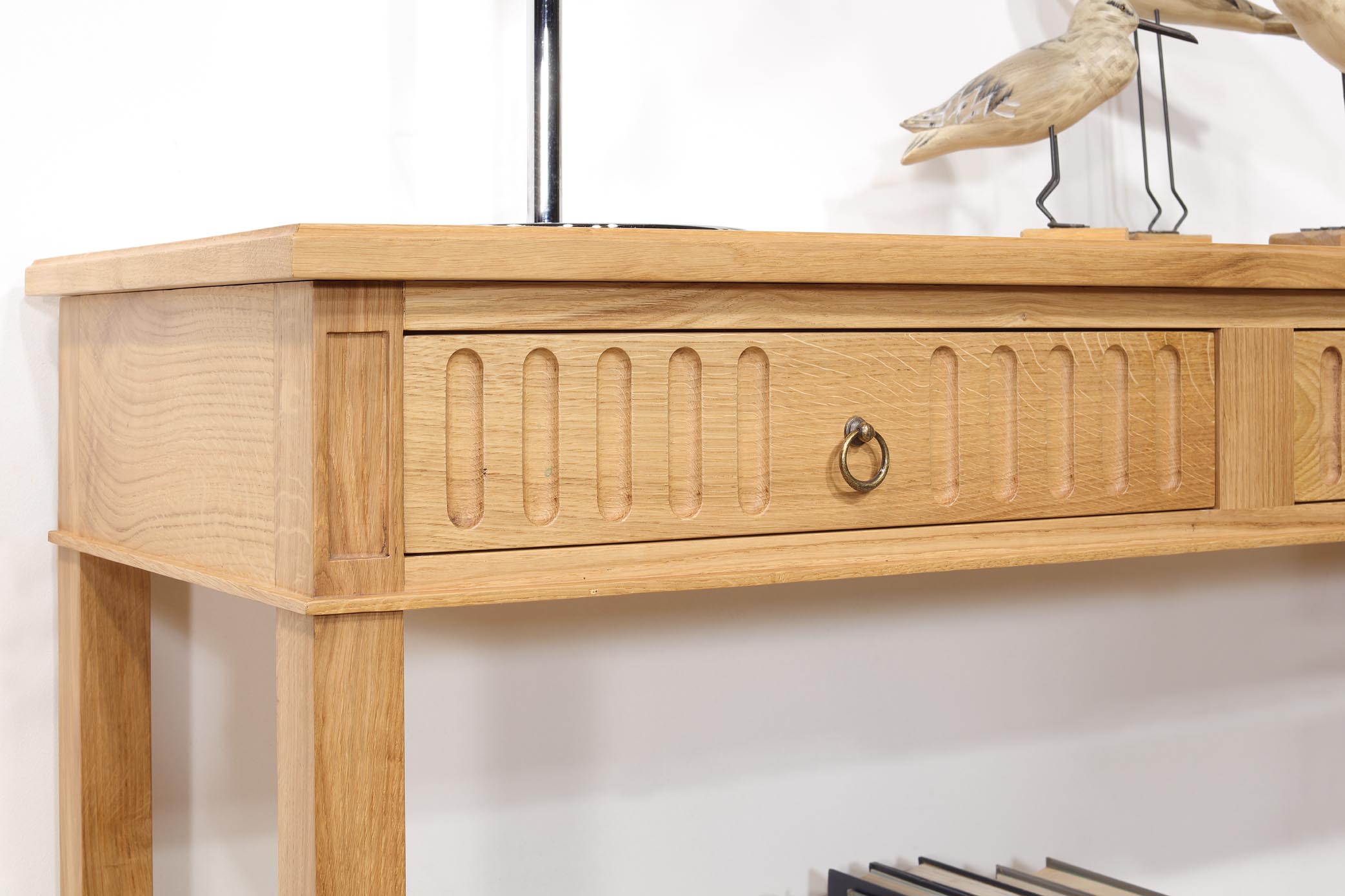 Sa finition est un chêne Naturel ciré et lustré, ou teinté selon votre convenance.