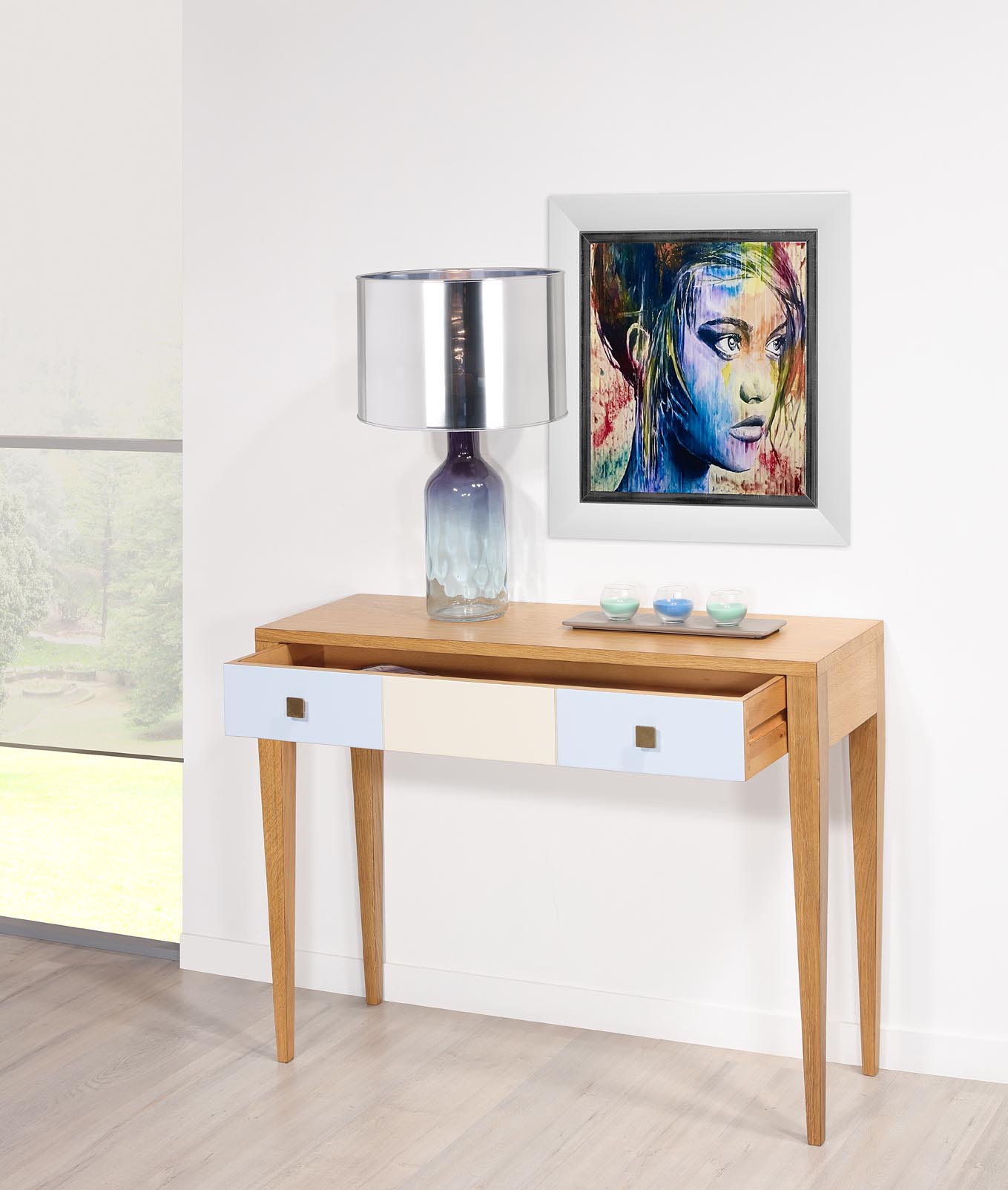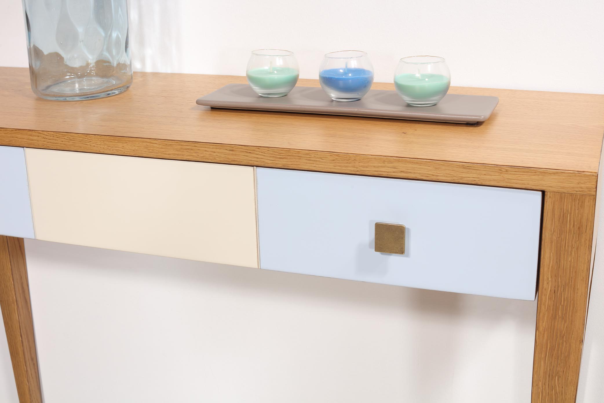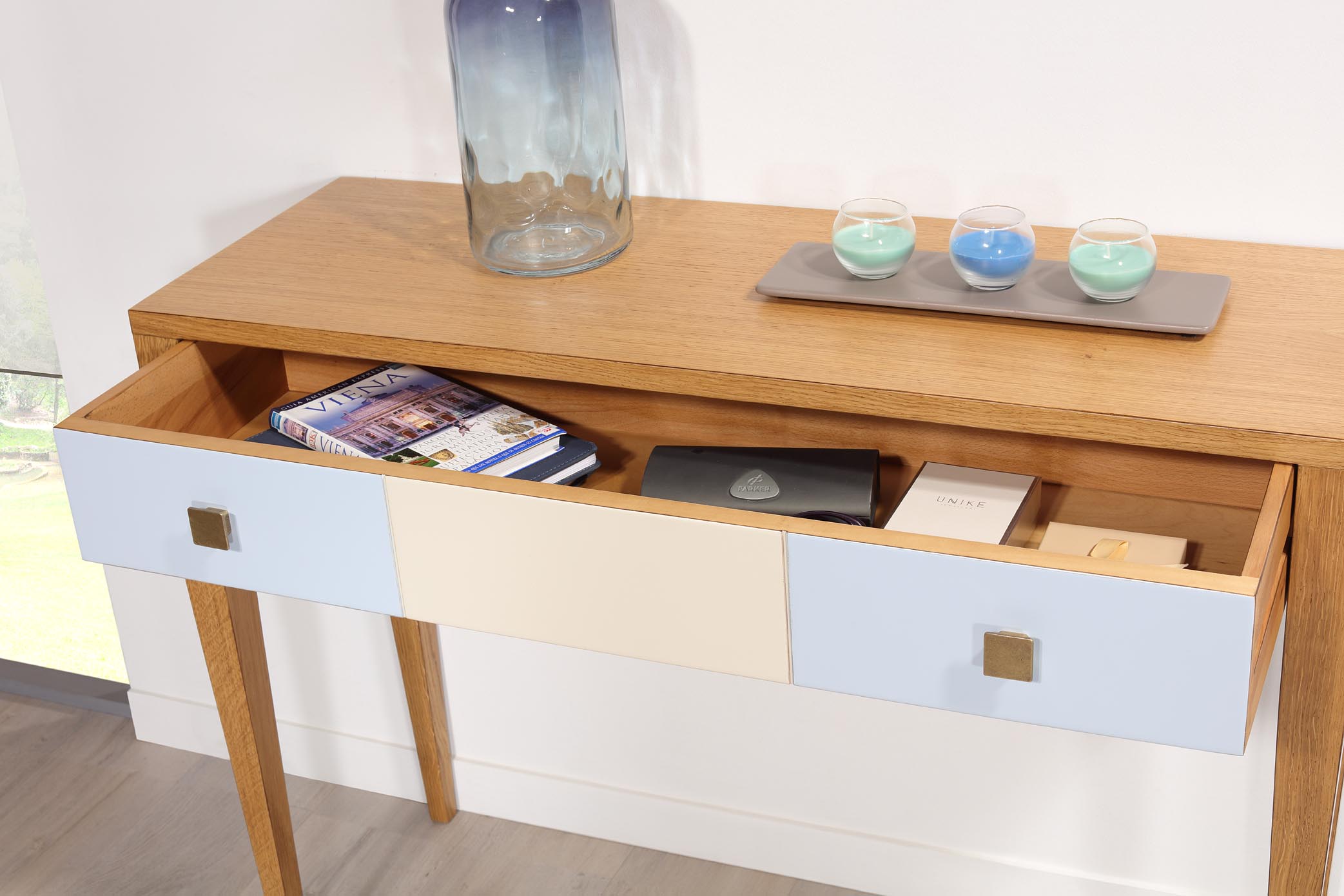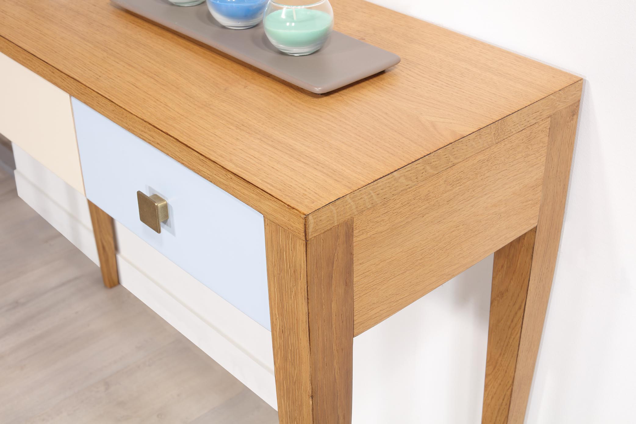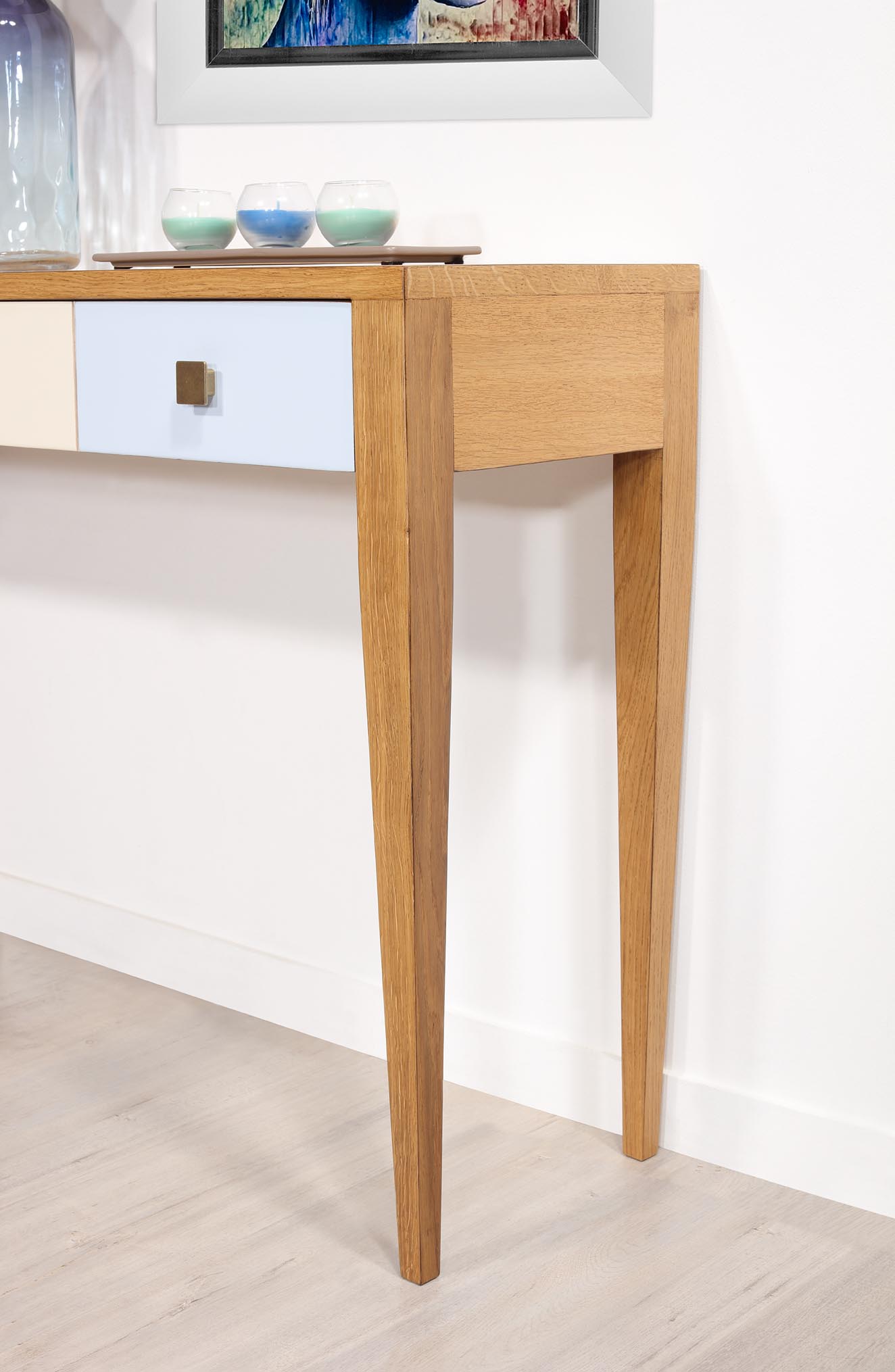 Très belle console réalisée en Chêne et merisier de ligne contemporaine,