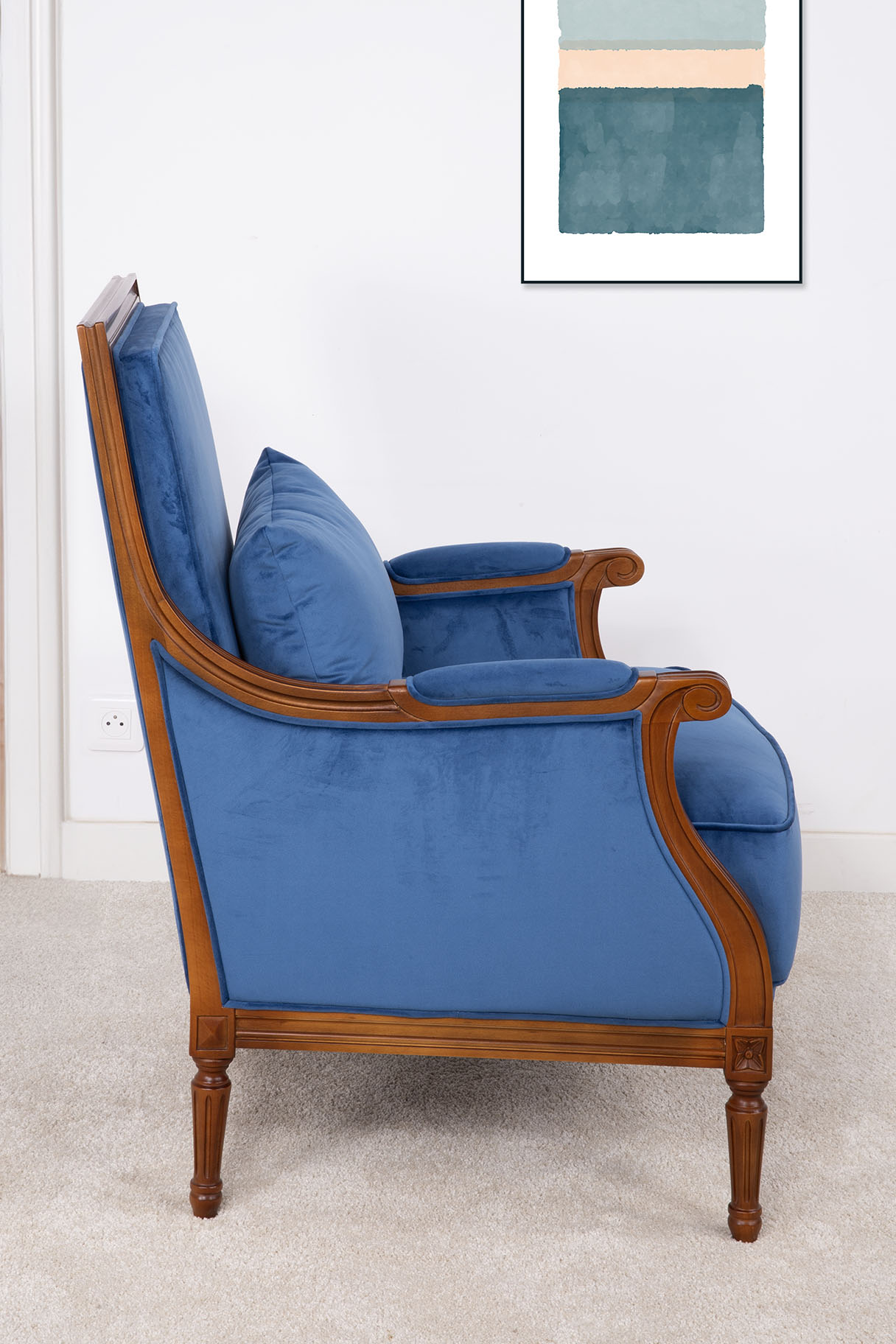 Fauteuil de style Louis XVI réalisée en Hêtre massif,