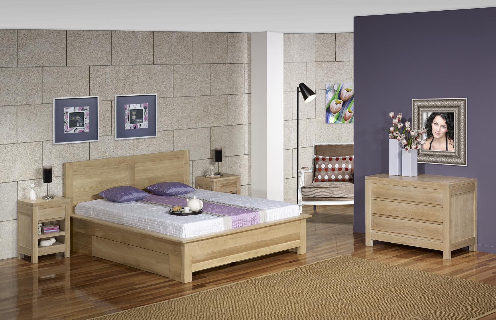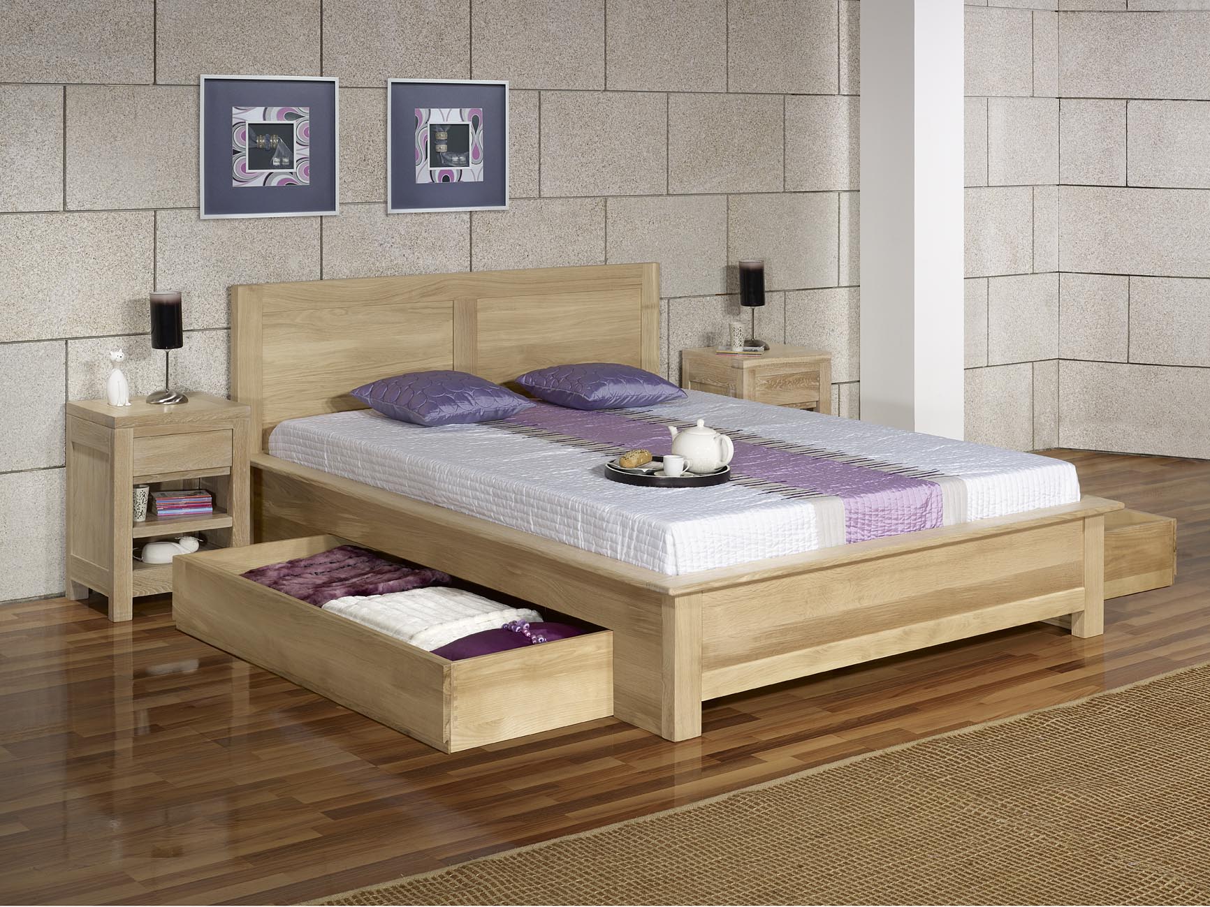 Lit Collection Nature 140*190 réalisé en Chêne massif AVEC TIROIRS Finition chêne Brossé