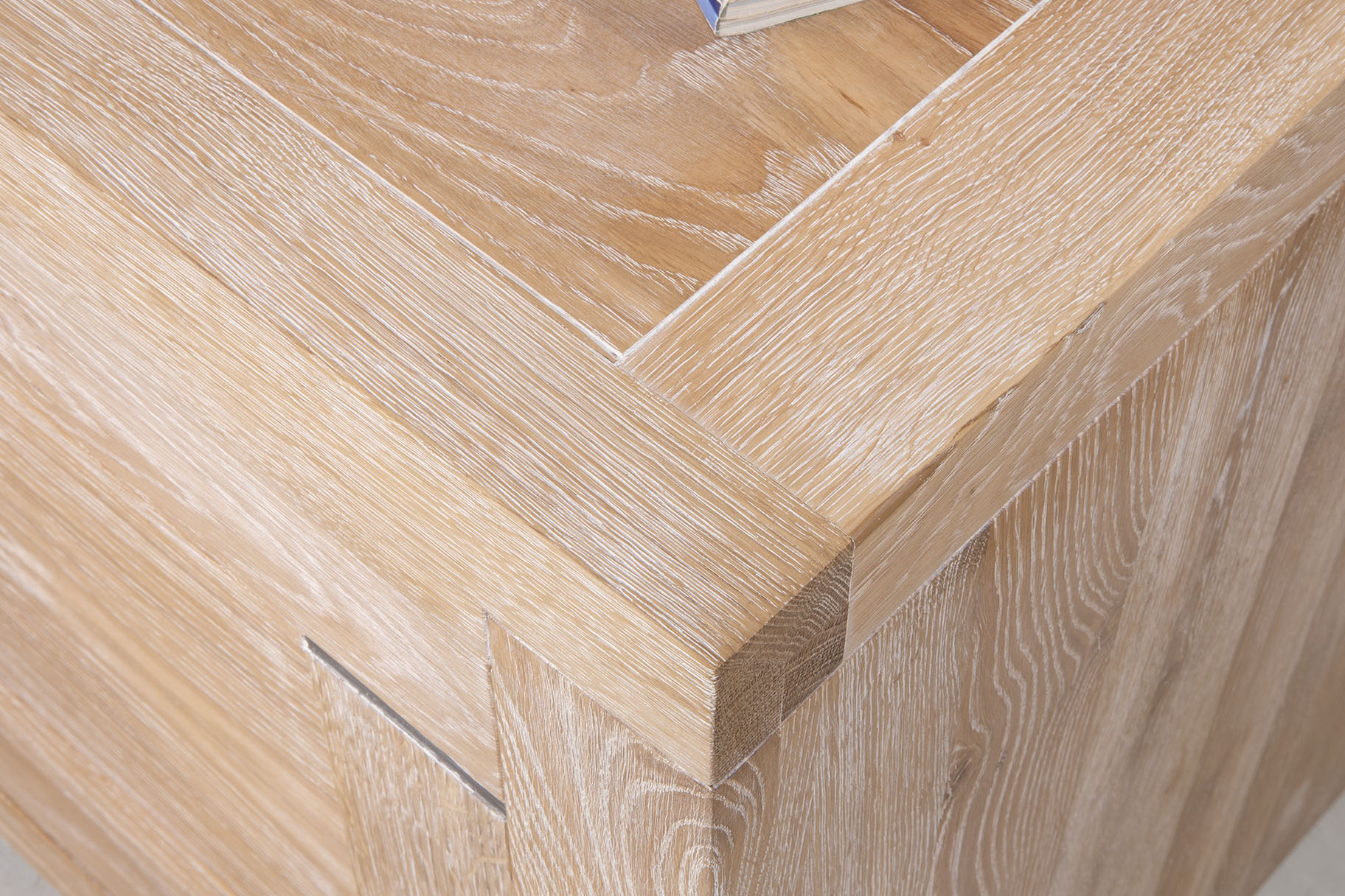 Ce meuble Tv ce fait aussi avec d’autre finition. La finition chêne Brossé Blanchi apportera à votre intérieur de la luminosité, tout en gardant la prestance et l’élégance du chêne.