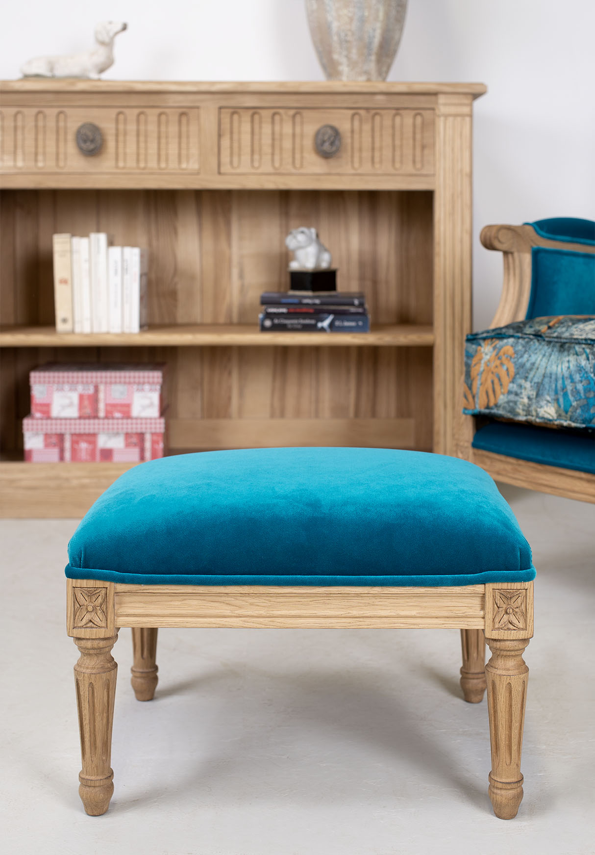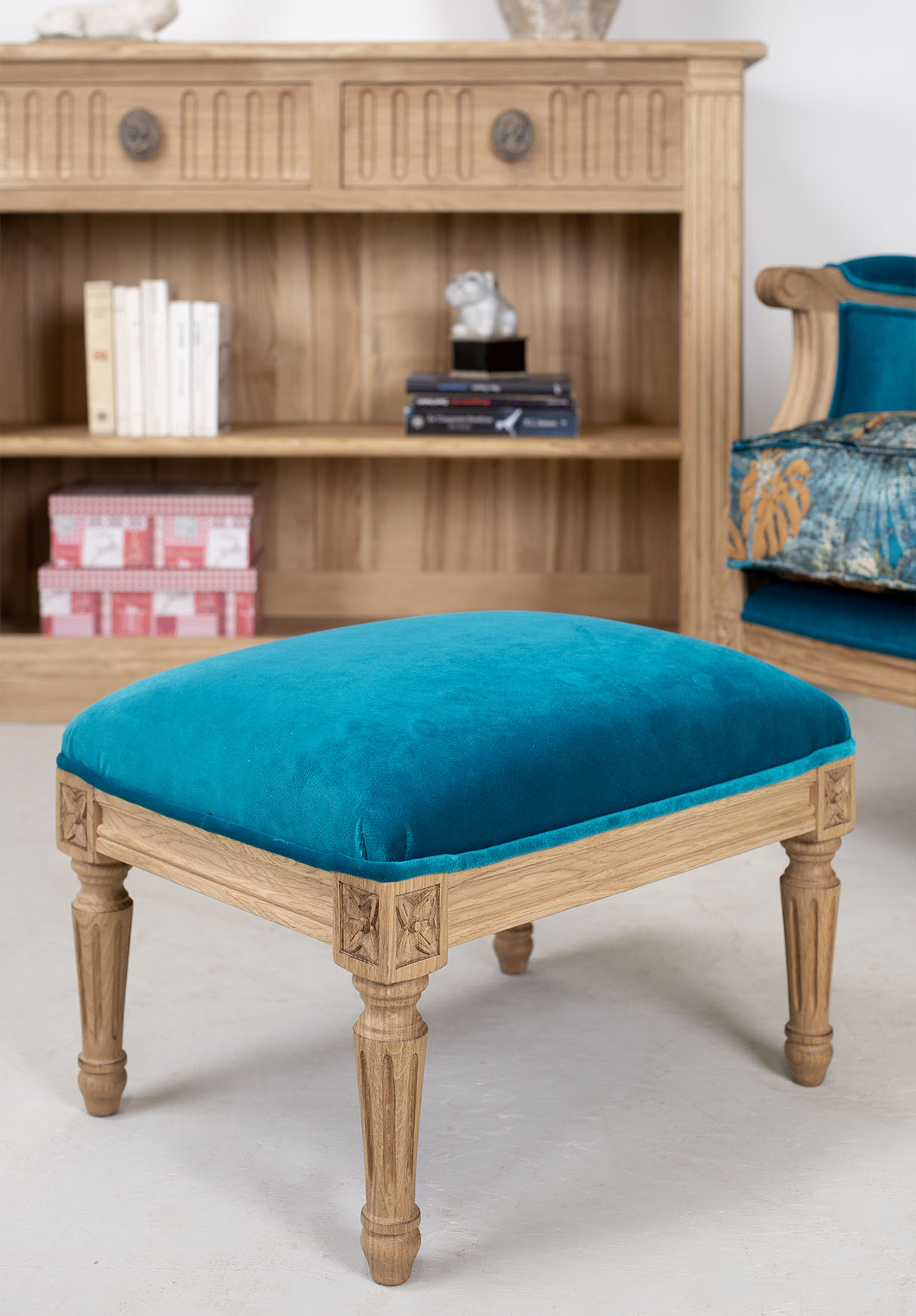 Repose-pieds réalisé en chêne massif de style Louis XVI