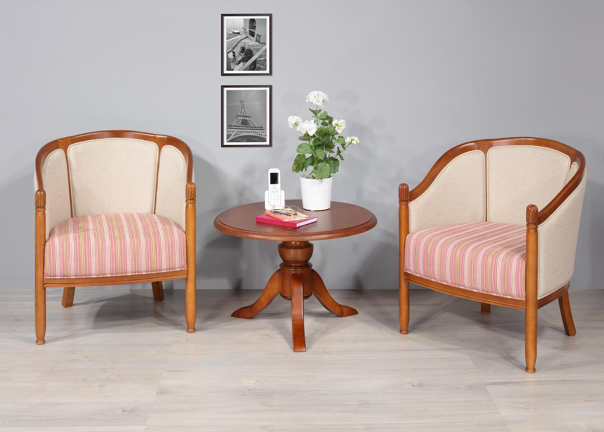 Table Basse ronde Annie, réalisée en Merisier Massif de style Louis Philippe