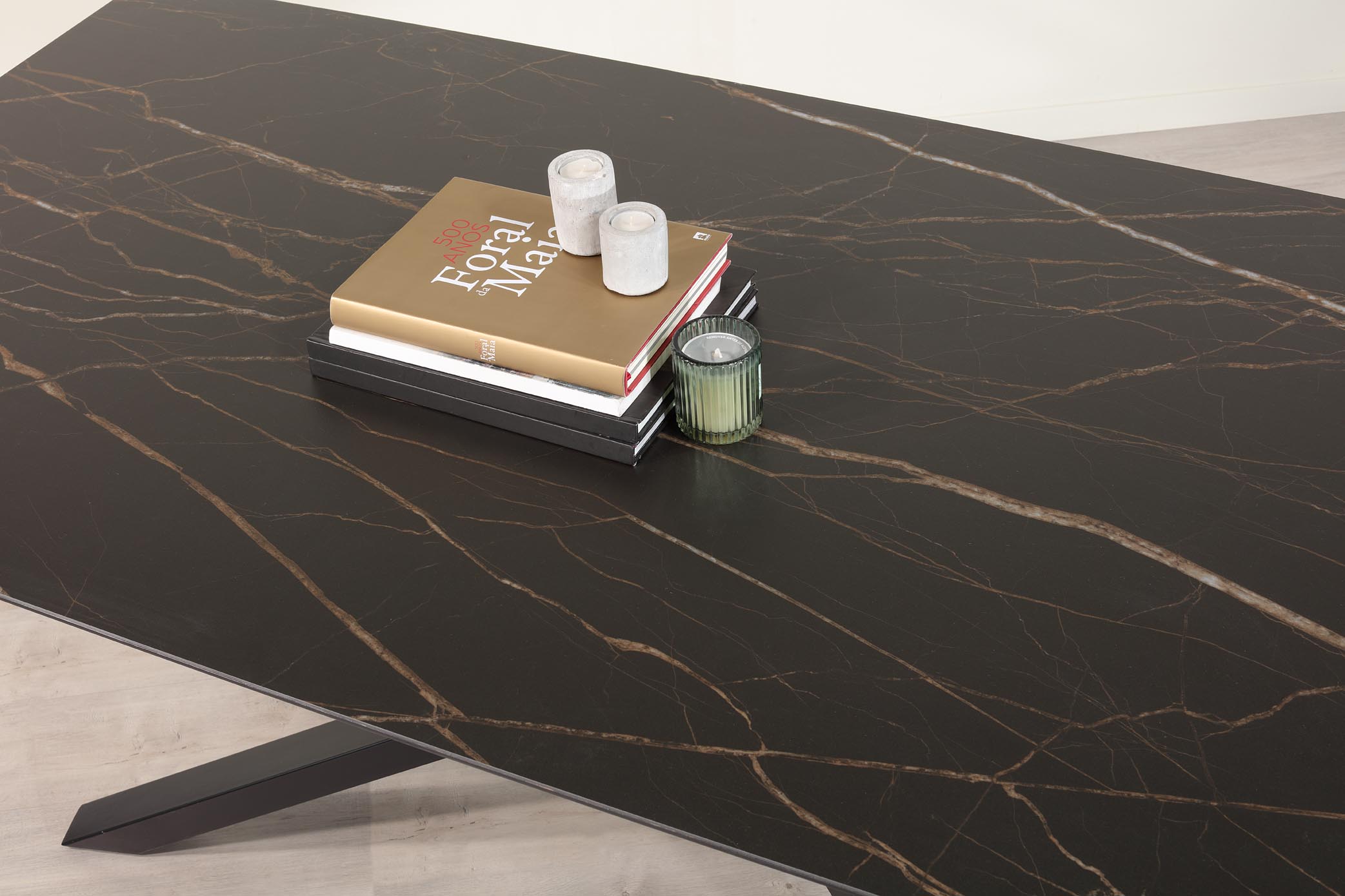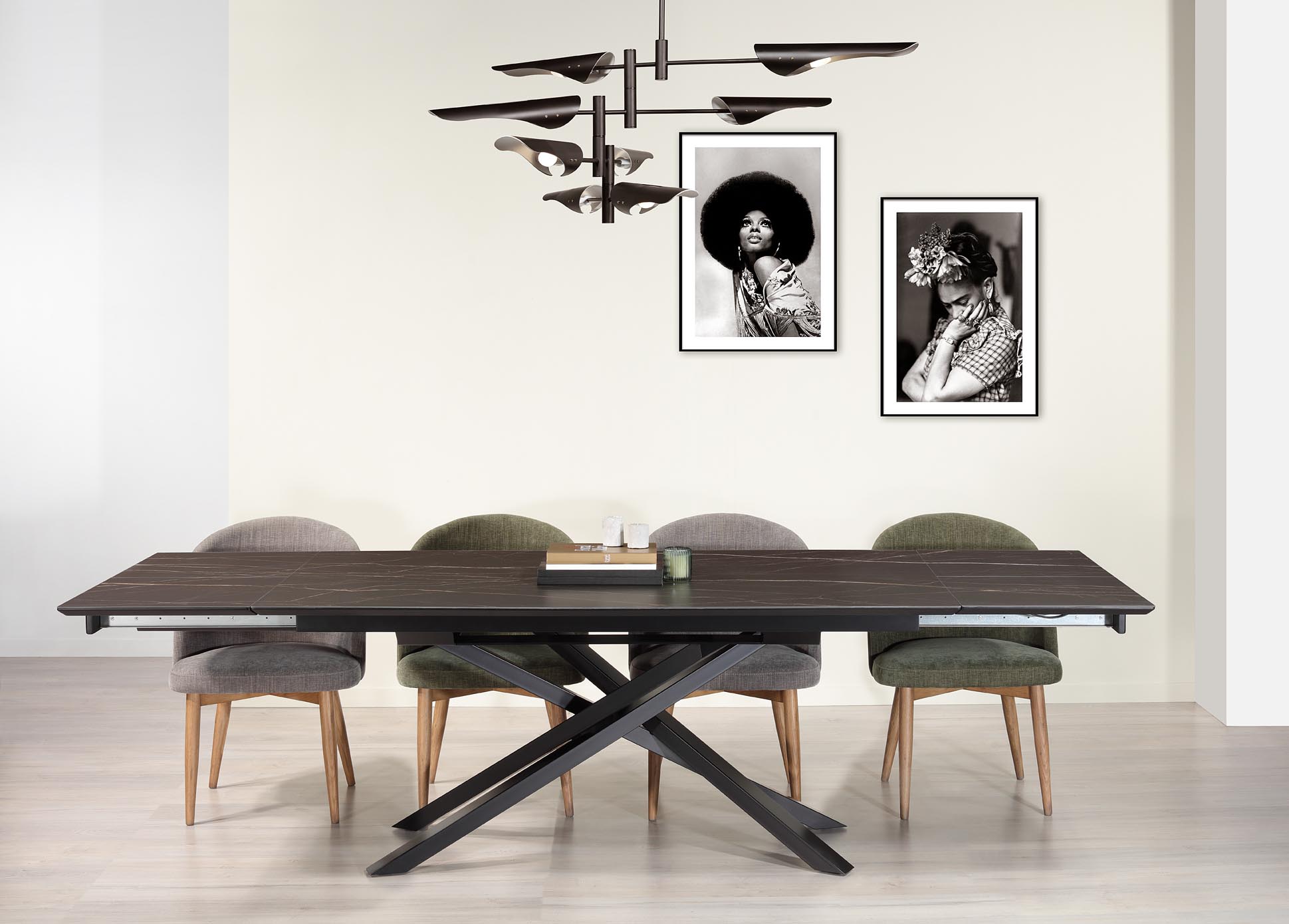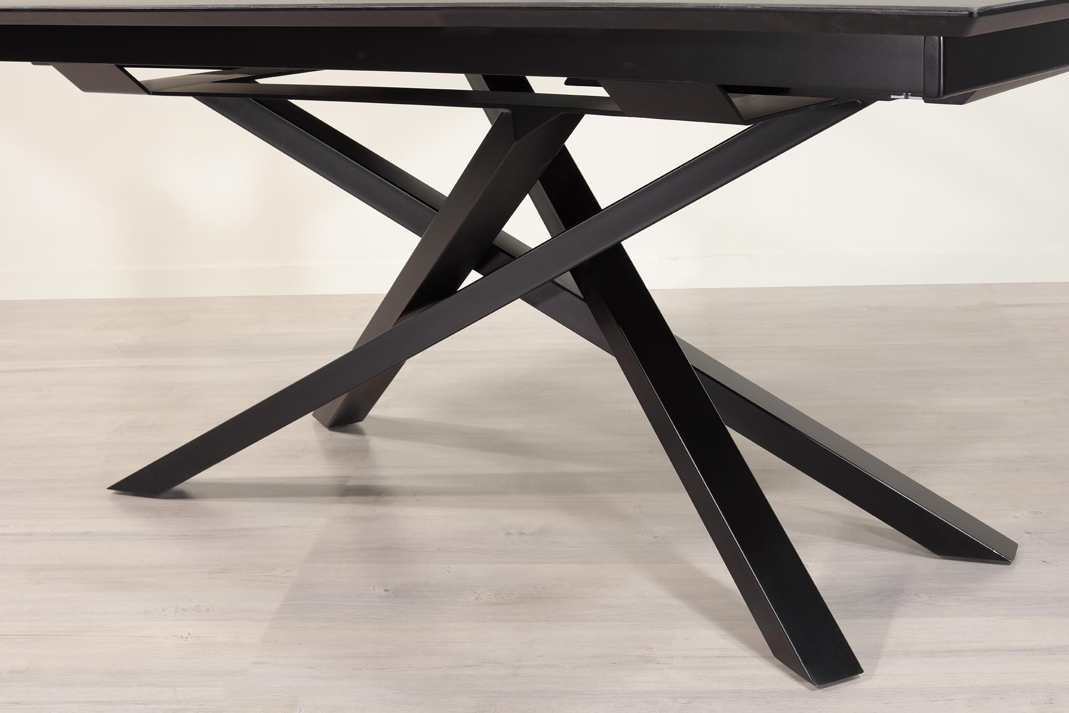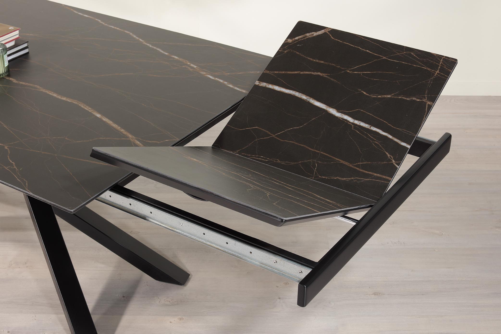 Table de repas extensible plateau céramique 180×100 avec 2 allonges intégrées de 50 cm,