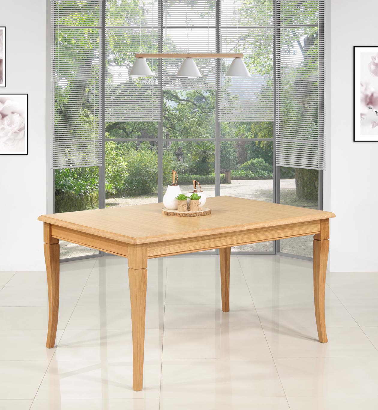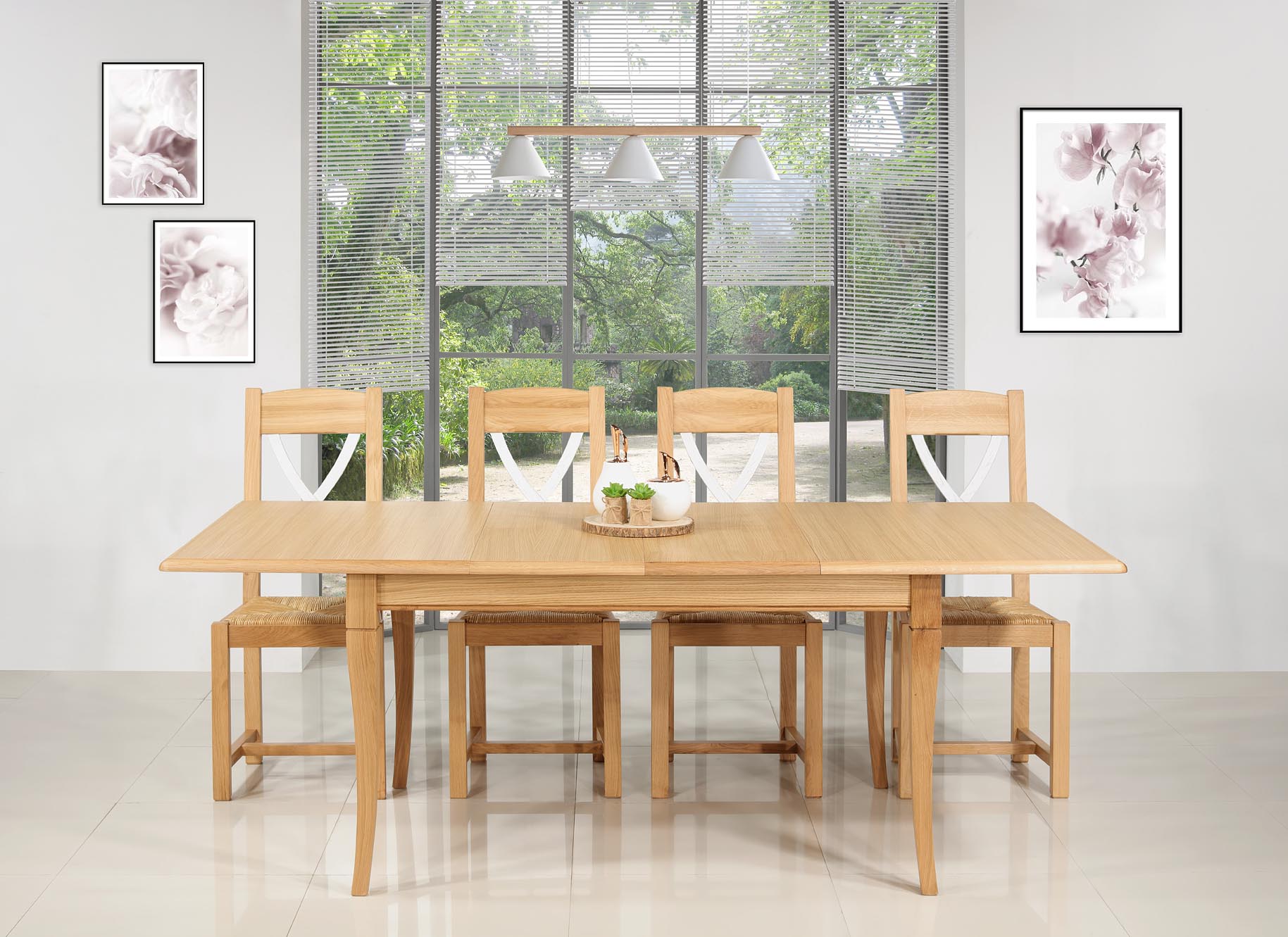 Pour vous aider dans vos recherches, la table est présentée avec les chaises Olivier Réf.CH18.
