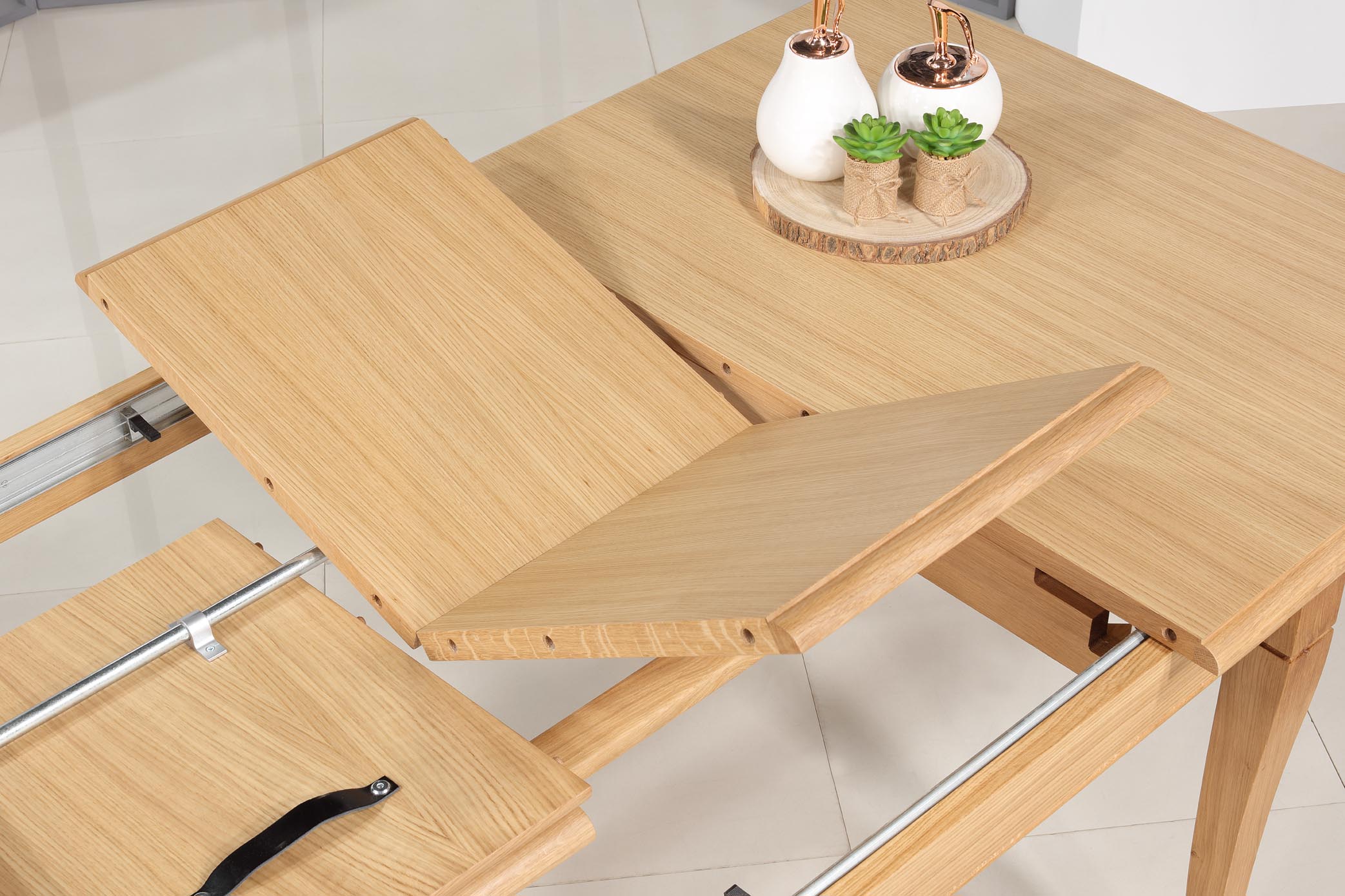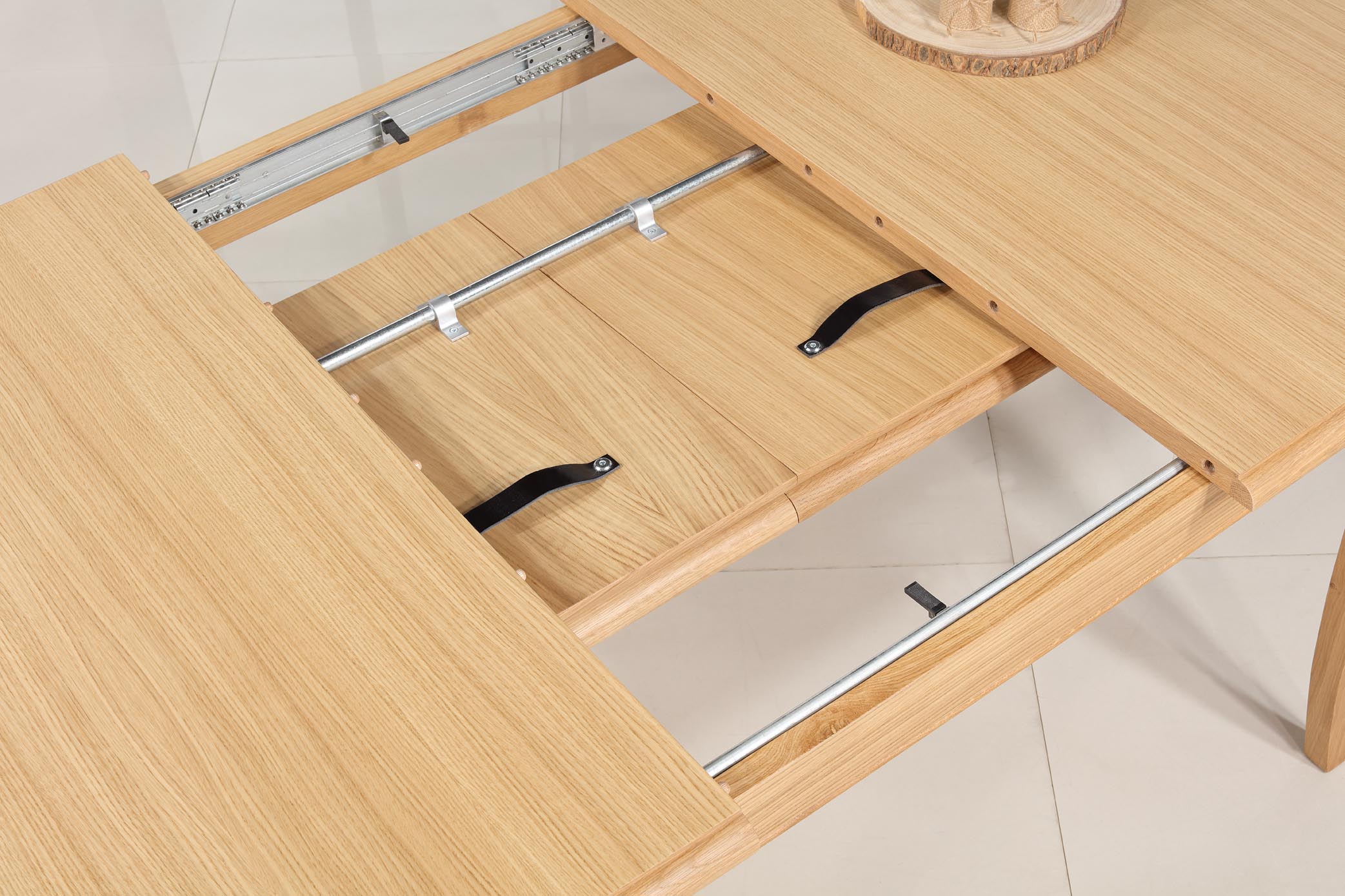 Les allonges sont placées sous le plateau,