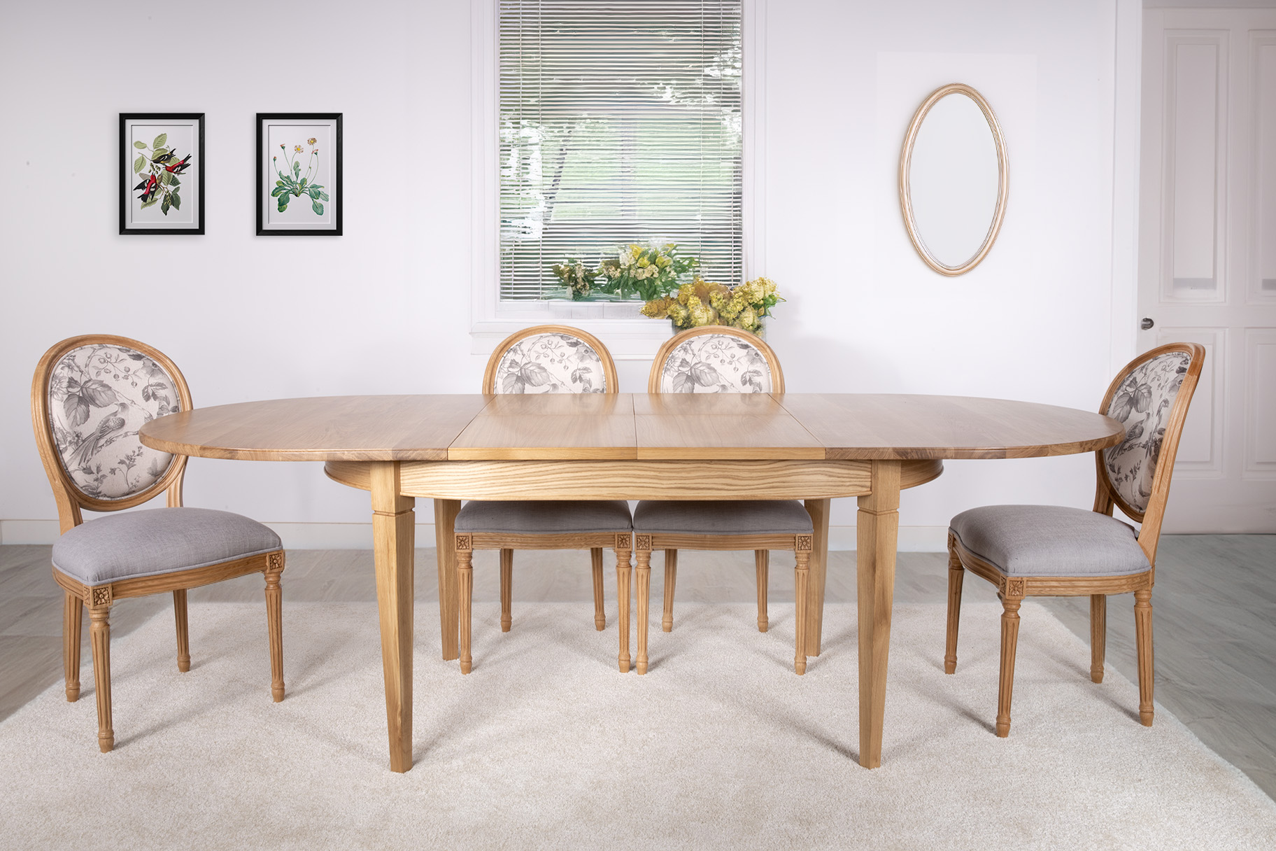 Table ovale 160*110 réalisée en chêne Massif de style Louis Philippe 2 allonges incorporées de 40 cm