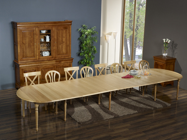 Avec ses allonges cette table mesure 510×135, cette table peut recevoir 24 à 26 personnes.